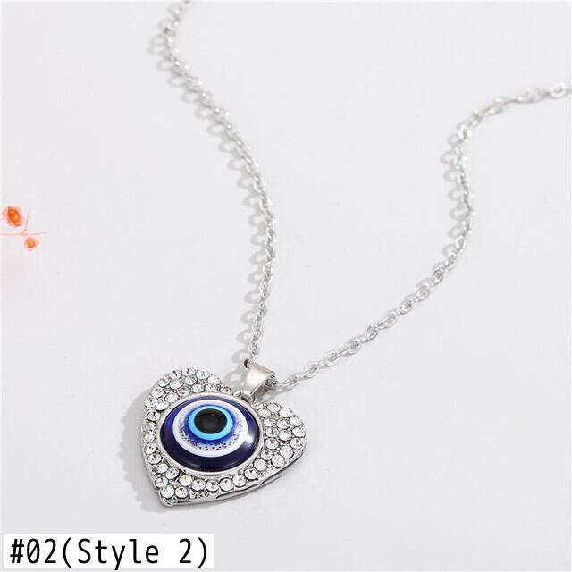 送料無料 ハートラウンドターキーブルーアイペンダントチョーカーネックレス女性の結婚披露宴ラインストーンジュエリークラビクルチェーンカラー レース アクセサリー AE7778839279792593