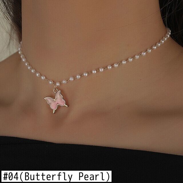 送料無料 デイジーパールネックレスレディースネックチェーンショートバタフライチェリーペンダントウェディング自由奔放に生きるジュエリースウィートカラーギフト レース 大人ガーリー キュート カジュアル 真珠 アクセサリー AE77788490598037