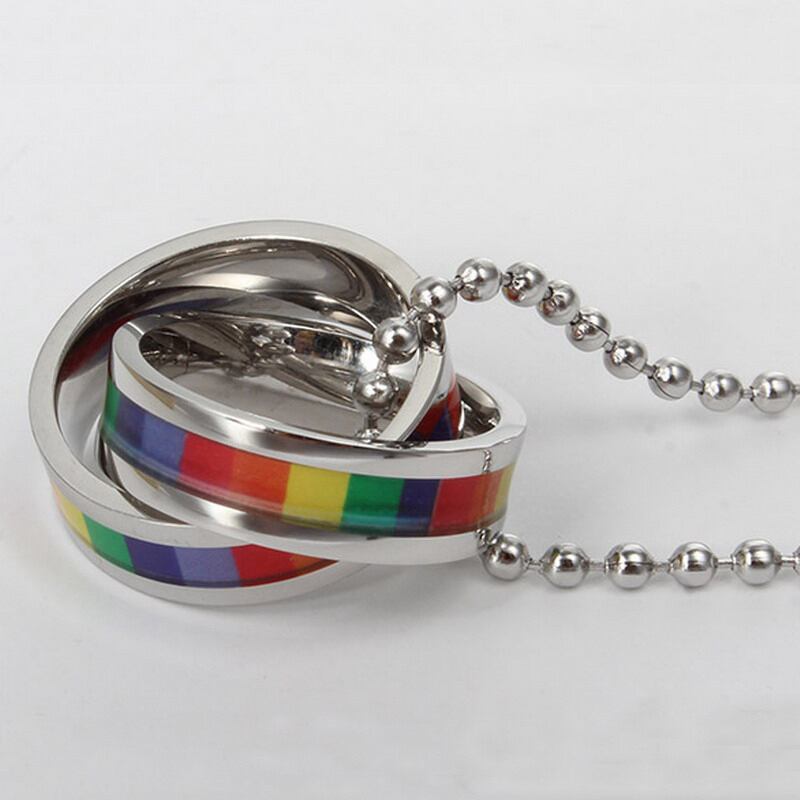 送料無料 ステンレス鋼サークルプレートレインボープライドゲイネックレス男性カップルユニセックスペンダントチェーンジュエリーギフト レース アクセサリー AE7778890815097580