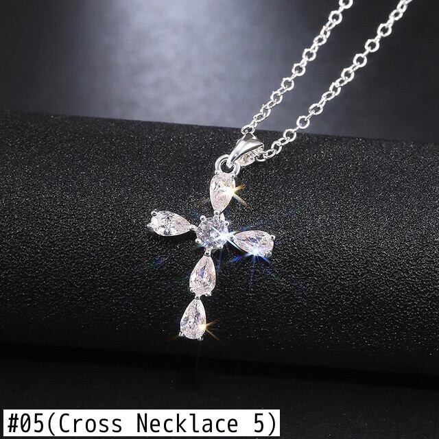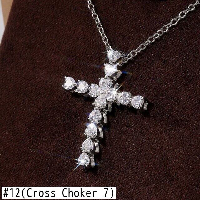 送料無料 シンプルなクロスジルコンチョーカーネックレス女性シャインペンダントクラビクルチェーンステートメントウェディングジュエリーガールズギフトカラー レース アクセサリー AE7778880710378055