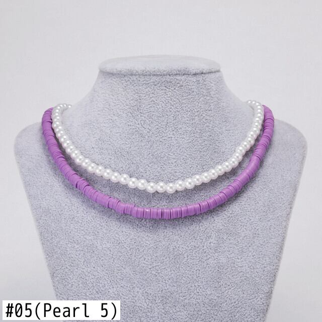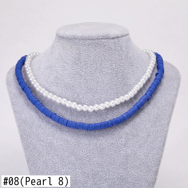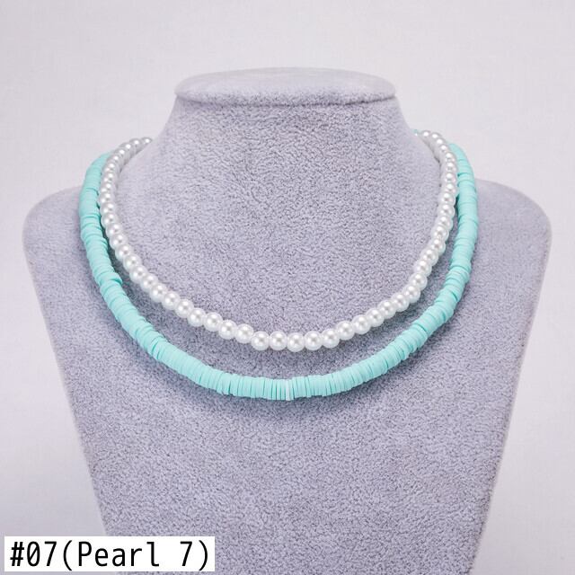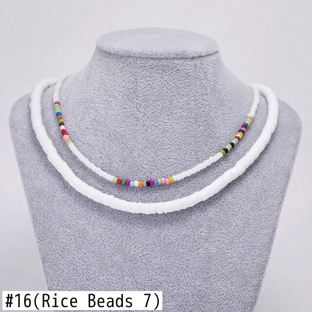 送料無料 キャンディーカラーガールズライスビーズポリマークレイネックレスセット女性イミテーションパールチョーカークラビクルチェーンビーチジュエリー2021 レース 真珠 アクセサリー AE7778866149511209