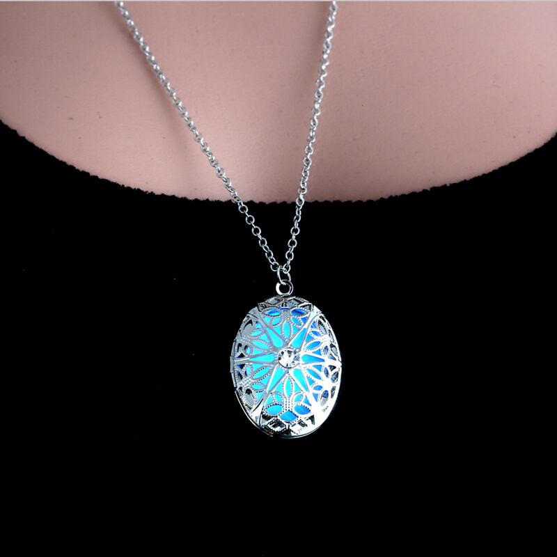 送料無料 ヴィンテージハートジオメトリルミナスペンダントネックレス女性中空楕円形ロケットがダークカラーで光るジュエリーパーティーギフト レース オーバル ビンテージ アクセサリー AE7778881823581368