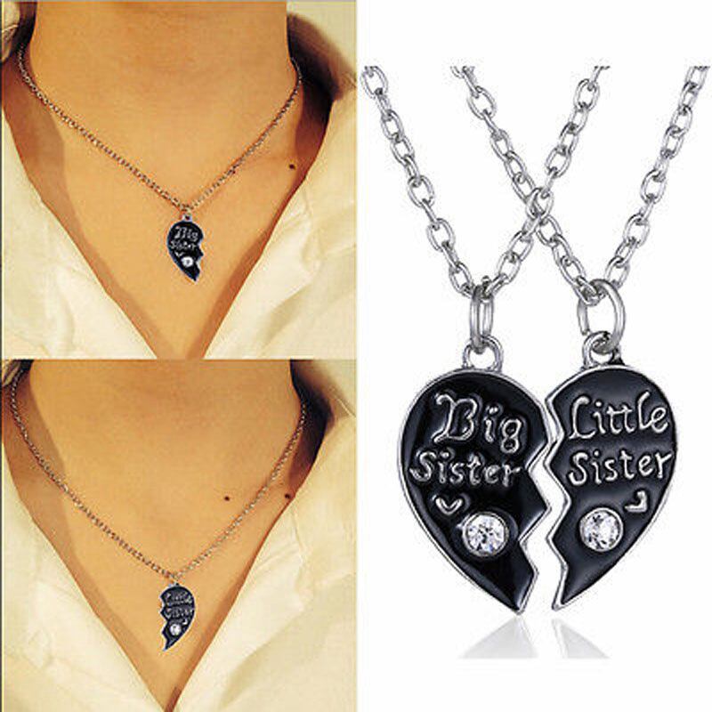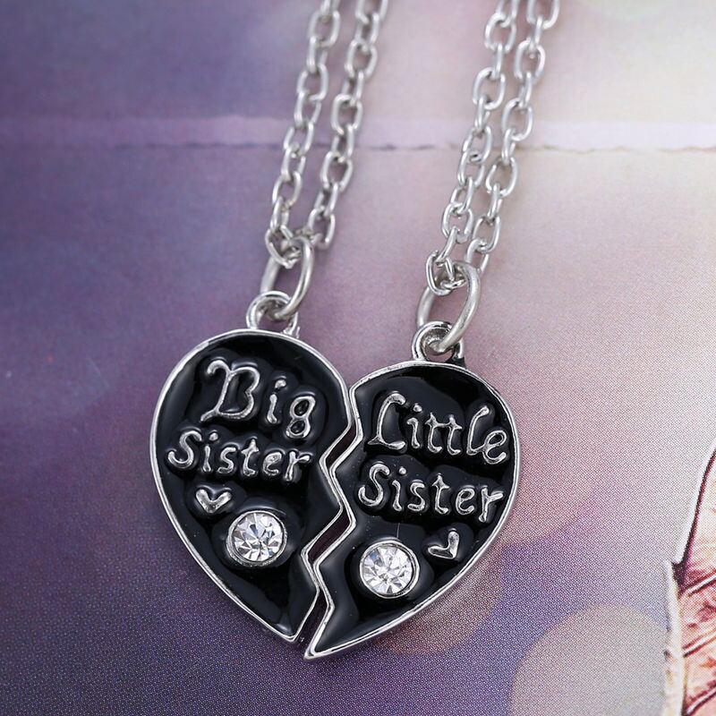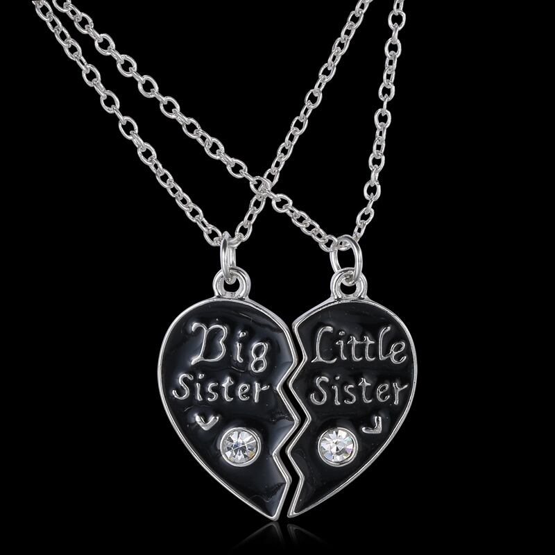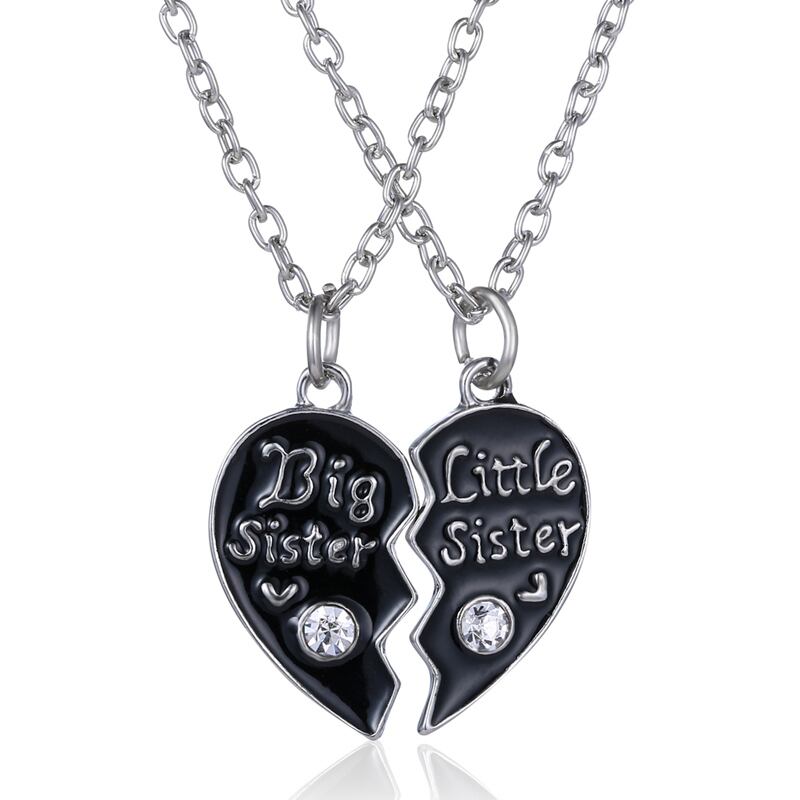 送料無料 2PC/セットシスターズブロークンハートペンダントネックレス女性ブラックエナメルパーソナリティギフトチャームスプライシングフレンドシップガールチョーカー レース アクセサリー AE7778835566075
