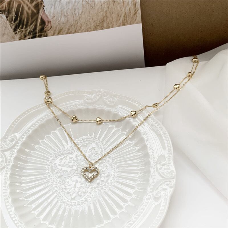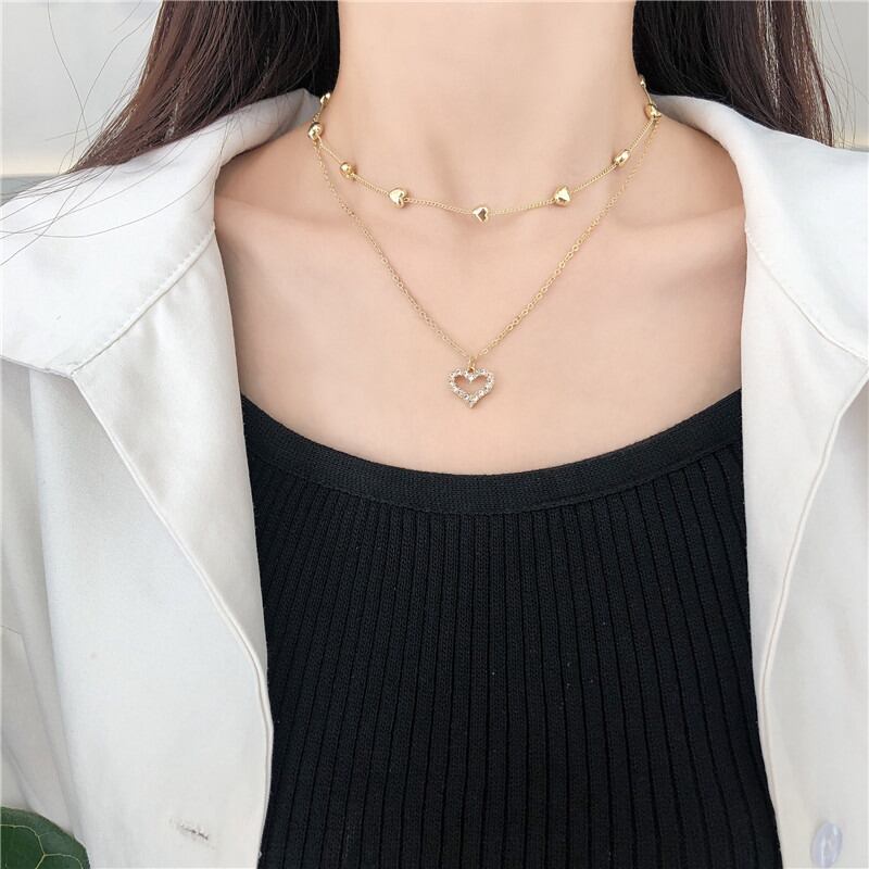 送料無料 クラビクルチェーンウェディングダブルレイヤーハートペンダントネックレス女性花嫁クリスタルゴールドカラーチョーカージュエリーギフト2021 レース アクセサリー AE7778861969091029