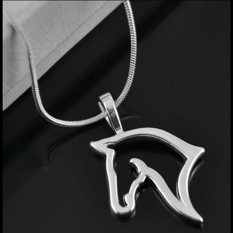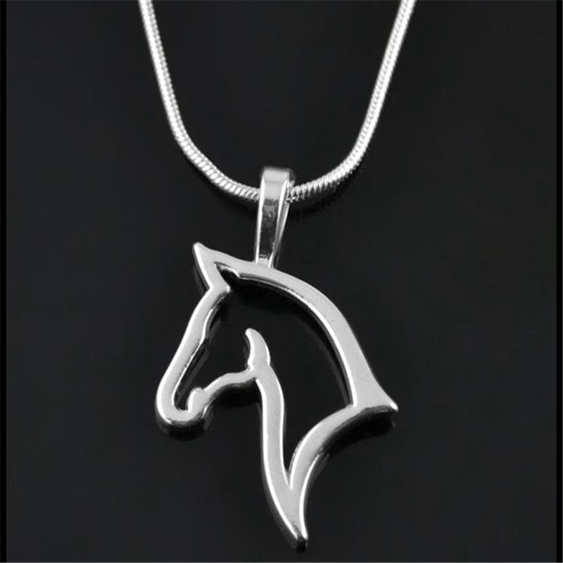 送料無料 シンプルな中空馬ペンダントネックレス女性シルバーカラーチェーンアニマルヘッドパンクパーティーデイリージュエリーメンズギフト レース 銀 アクセサリー AE7778820162958764