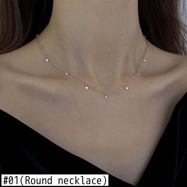 送料無料 シンプルな薄いラウンドシルバーカラークラビクルチェーンネックレスペンダントチョーカー女性銅ジュエリー2021女の子ギフト レース 銀 アクセサリー AE7778853556804374