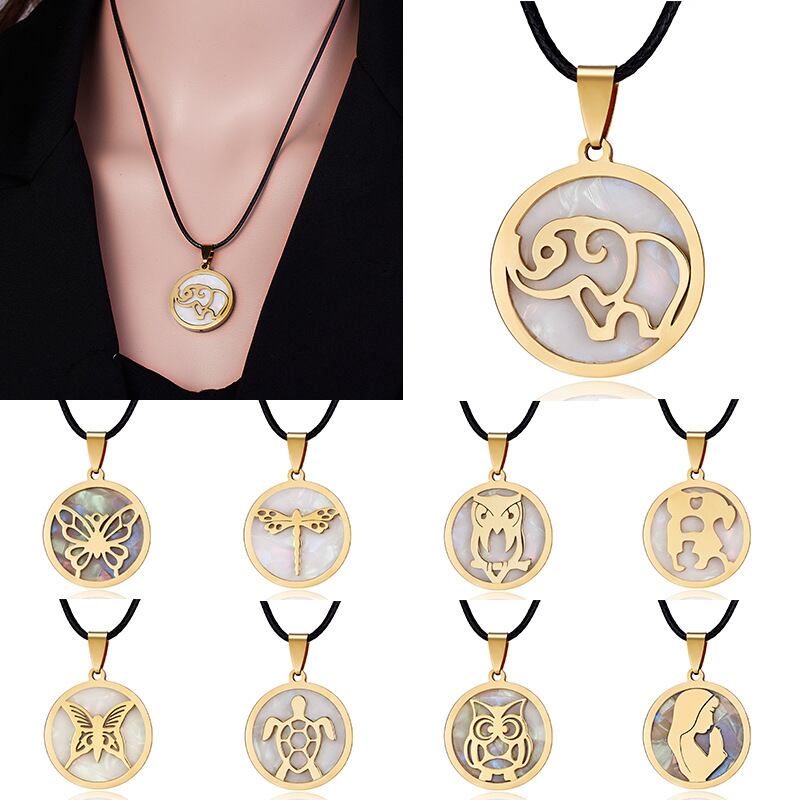 送料無料 シンプルなラウンドシェルの女性のネックレスラッキーエレファントフクロウトンボペンダントチェーンガールズチャームジュエリーパーティーギフト レース アクセサリー AE7778831479463693
