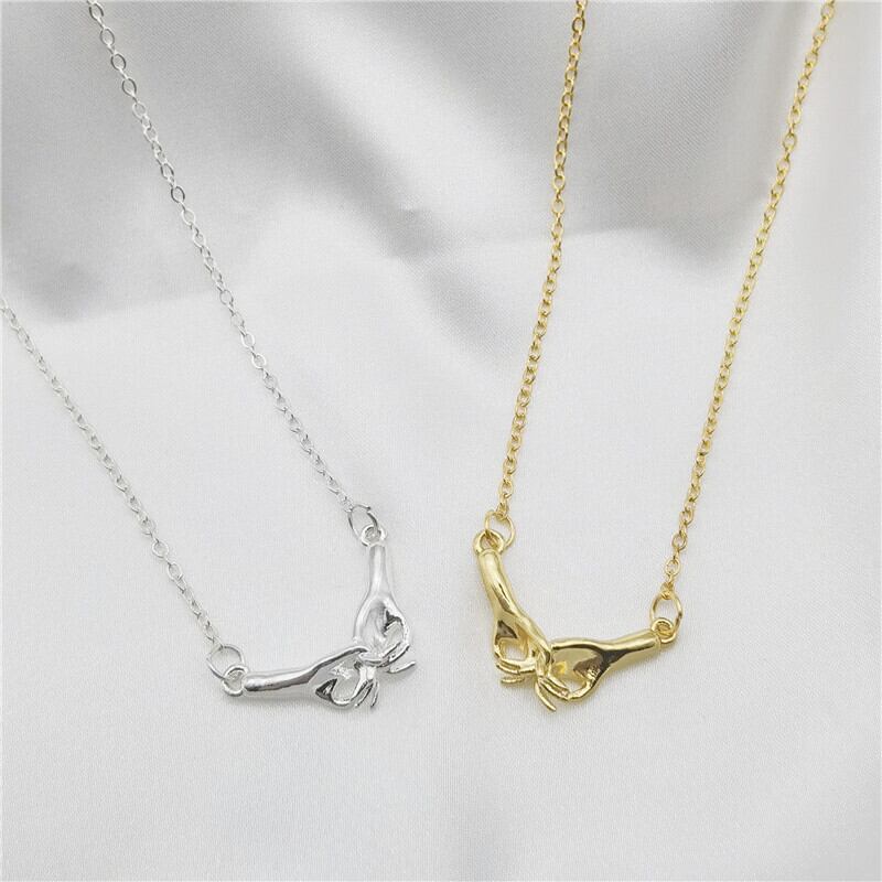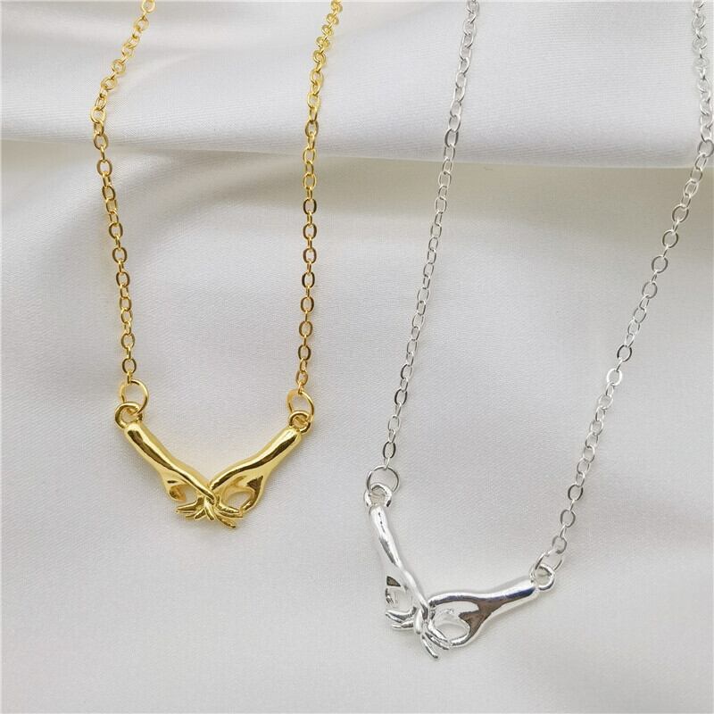 送料無料 親友ホールドハンズチョーカーネックレス女性ペンダントシルバーカラーチェーンウェディングパーティーカップル恋人ジュエリーギフト2022 レース 銀 アクセサリー AE7778847516284527