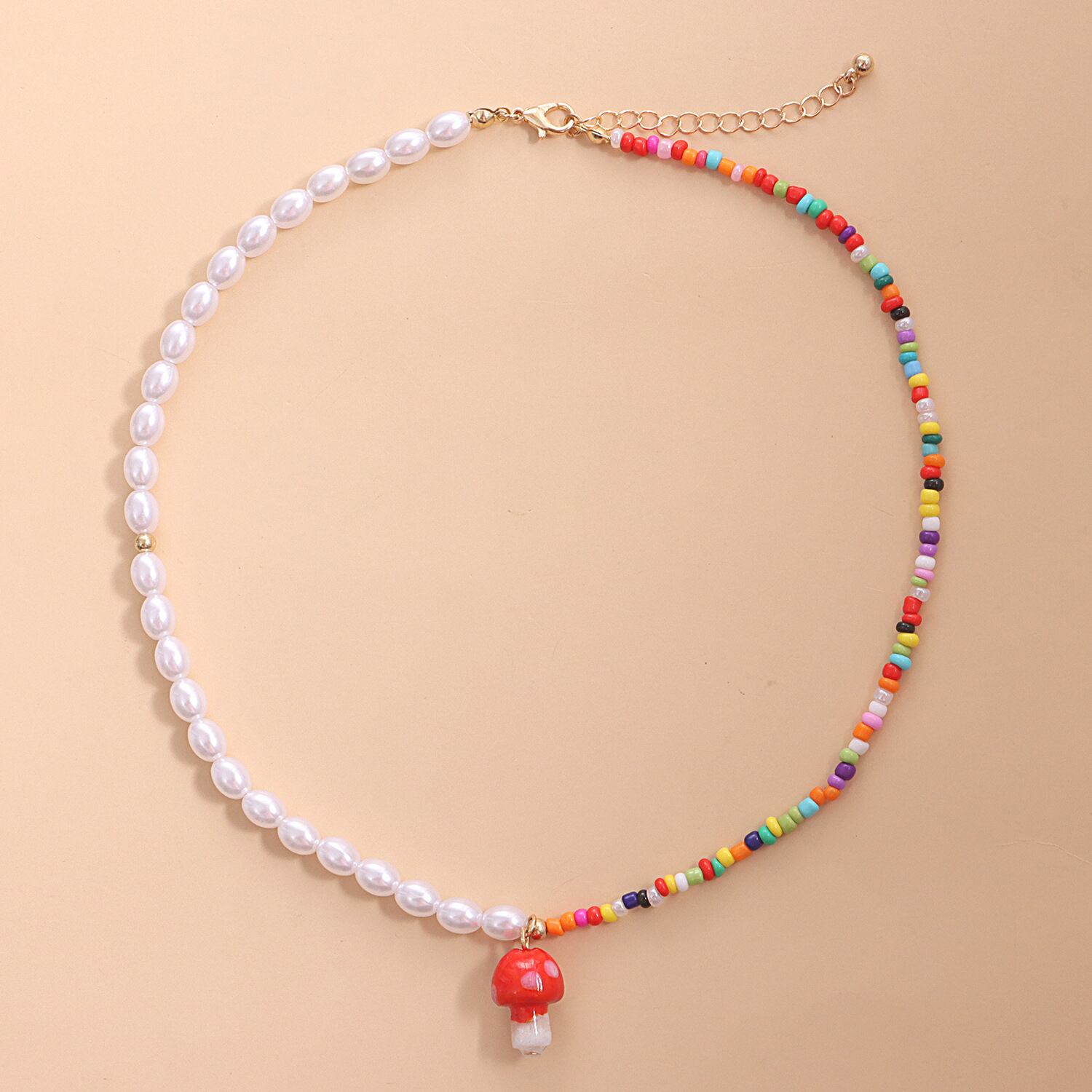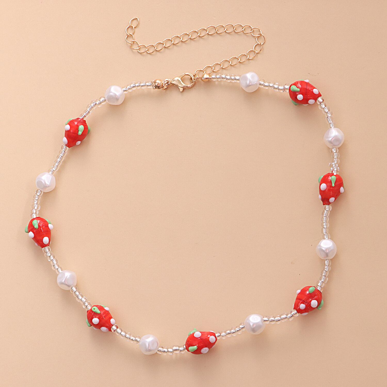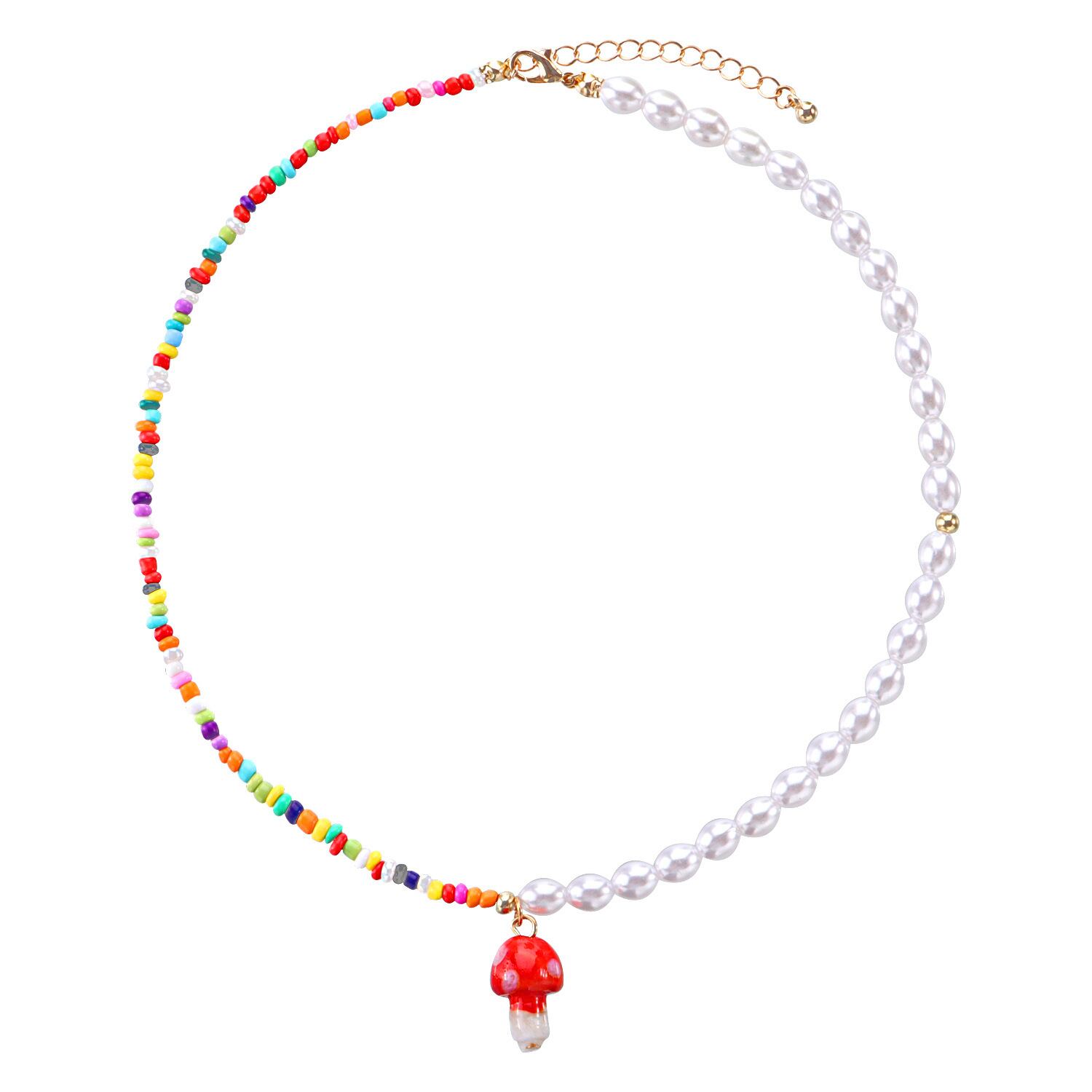 送料無料 ボヘミアンショートチョーカーマッシュルームストロベリーアイパールネックレスジュエリー女性2021ビーズ鎖骨チェーンガールズギフト レース 真珠 アクセサリー AE7778851405722067