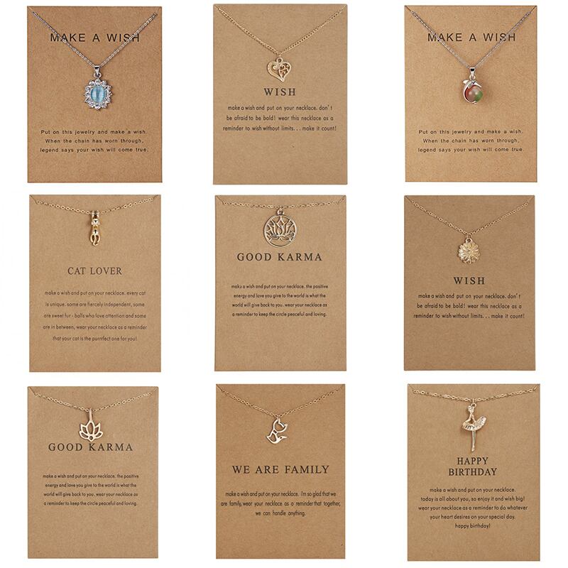 送料無料 ウィッシュカード友情ジュエリーネックレス女性ゴールドカラーチェーンイルカフラワーハートアニマルクリスタルパーティーガールチョーカーギフト レース フラワーデザイン アクセサリー AE7778894391095290
