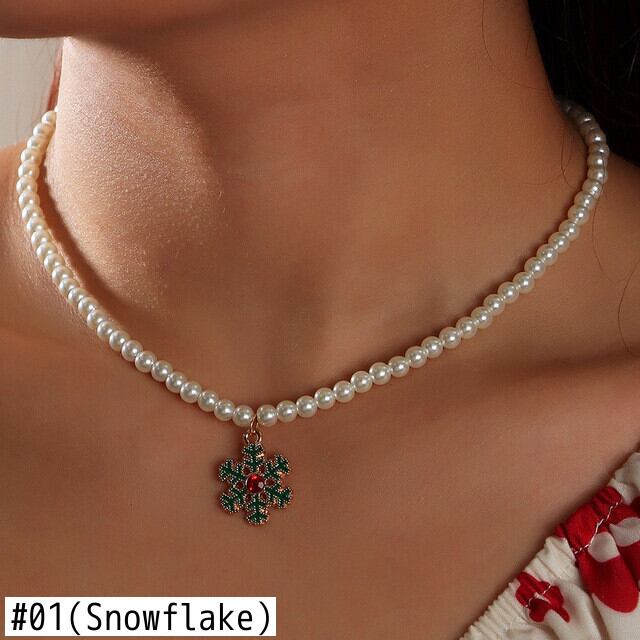 送料無料 フラワークリスマスジュエリーベルペンダントネックレス女性2022年ギフトチョーカーチェーンツリースノーフレークキッズパールカラー レース 真珠 フラワーデザイン アクセサリー AE7778874738960562