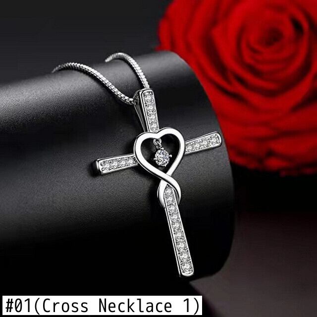送料無料 クロスペンダントネックレス女性カップルハートインフィニットクリスタルラインストーンチェーンチョーカーウェディングパーティージュエリーユニセックスギフト レース アクセサリー AE7778866060552361