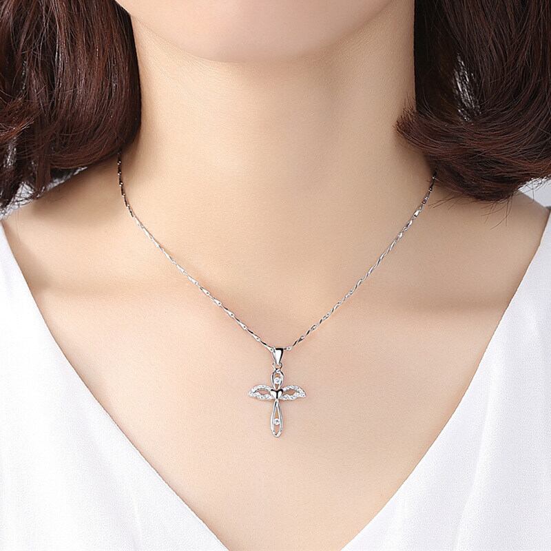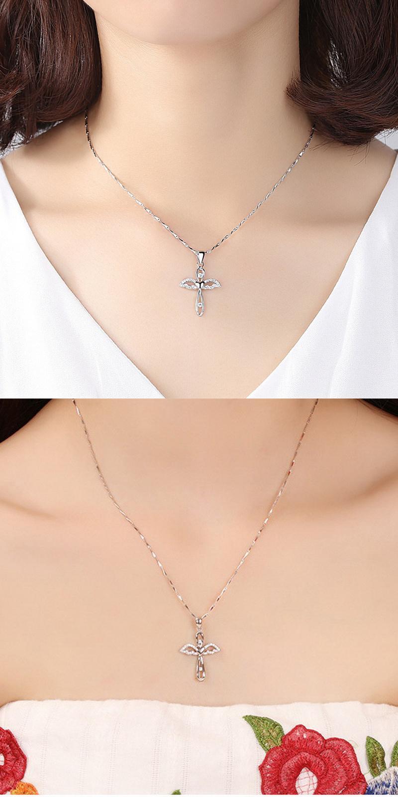 送料無料 シルバーカラークロスジルコンネックレスレディースペンダントチョーカークラビクルチェーンチャームガールズジュエリーウェディングパーティーギフト レース 銀 アクセサリー AE7778848499553830