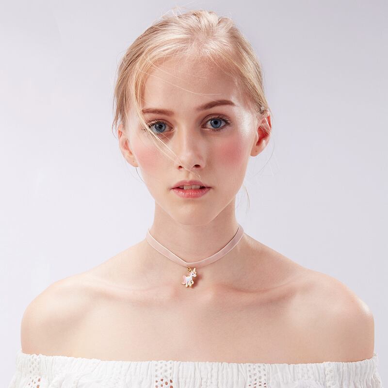 送料無料 かわいい馬リボンチョーカーネックレス女の子女性ジュエリーマルチカラーエナメル動物ペンダント鎖骨ヴィンテージスタイルギフト レース 大人ガーリー スウィート キュート カジュアル ビンテージ アクセサリー AE7778845826869466