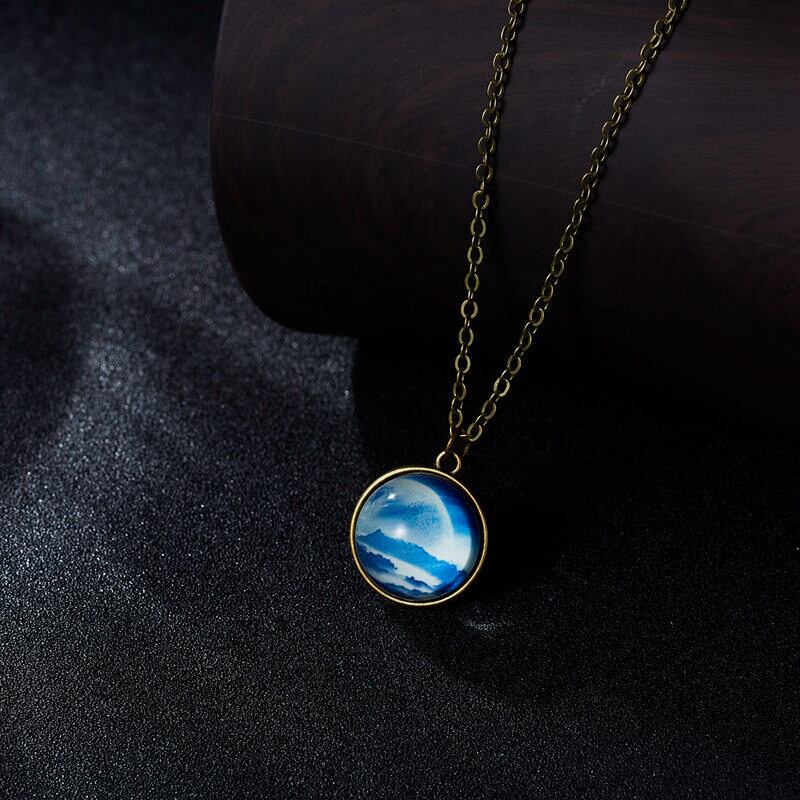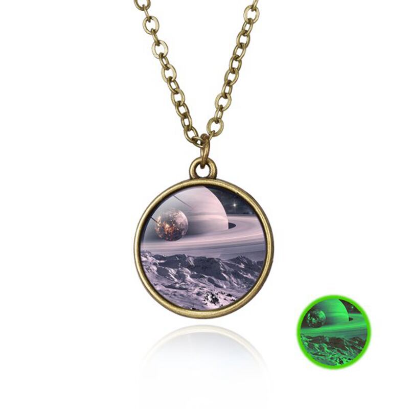 送料無料 2021ギャラクシー星雲宇宙発光ペンダントネックレスレトロな女性男性ギフト両面Glチョーカーキッズアクセサリー レース アクセサリー AE7778811781118404
