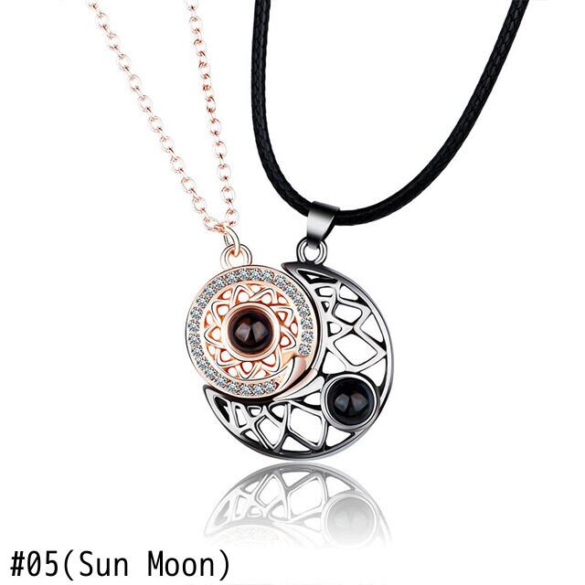送料無料 ユニークなカップルネックレスハートサンムーン幾何学的磁気マッチングペンダントジュエリープロジェクションチョーカーネックチェーン女性男性ギフト レース アクセサリー AE7778867495282633