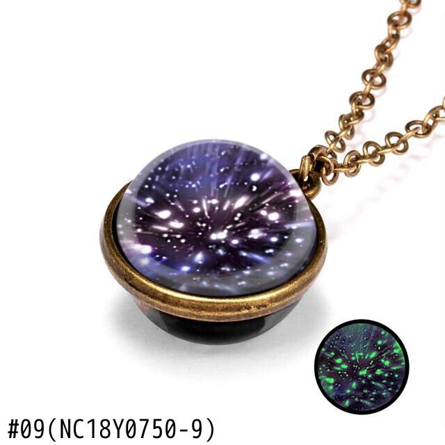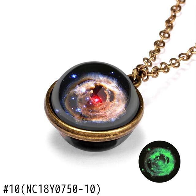 送料無料 ユニバースプラネットグローイングペンダントネックレス女性ヴィンテージルミナスギャラクシー星雲両面Glグローインザダークジュエリーギフト レース ビンテージ アクセサリー AE7778869474154109