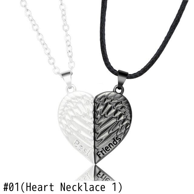 送料無料 2PCS/セットマグネティックブロークンハートカップルネックレス女性男性ペアペンダントチェーンエンジェルウィングチャームチョーカーギフト レッド レース アクセサリー AE77788832972437