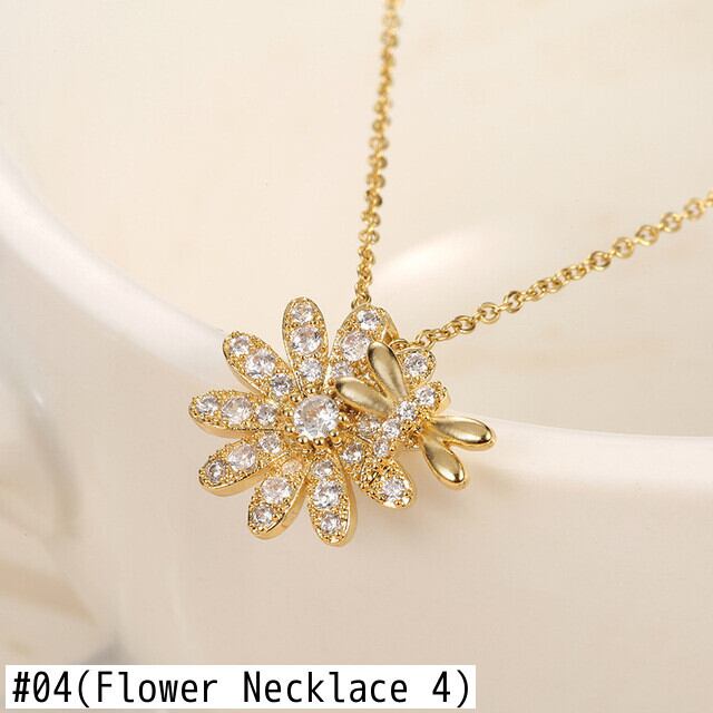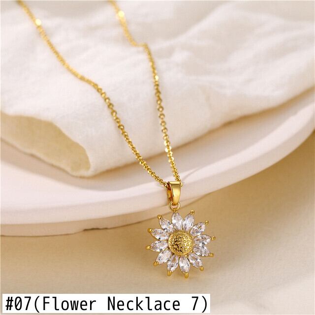 送料無料 フラワーネックレス女性チョーカーひまわりデイジーリーフジルコンペンダントチェーンステートメントウェディングジュエリーガールギフトカラー レース フラワーデザイン アクセサリー AE7778888866665038