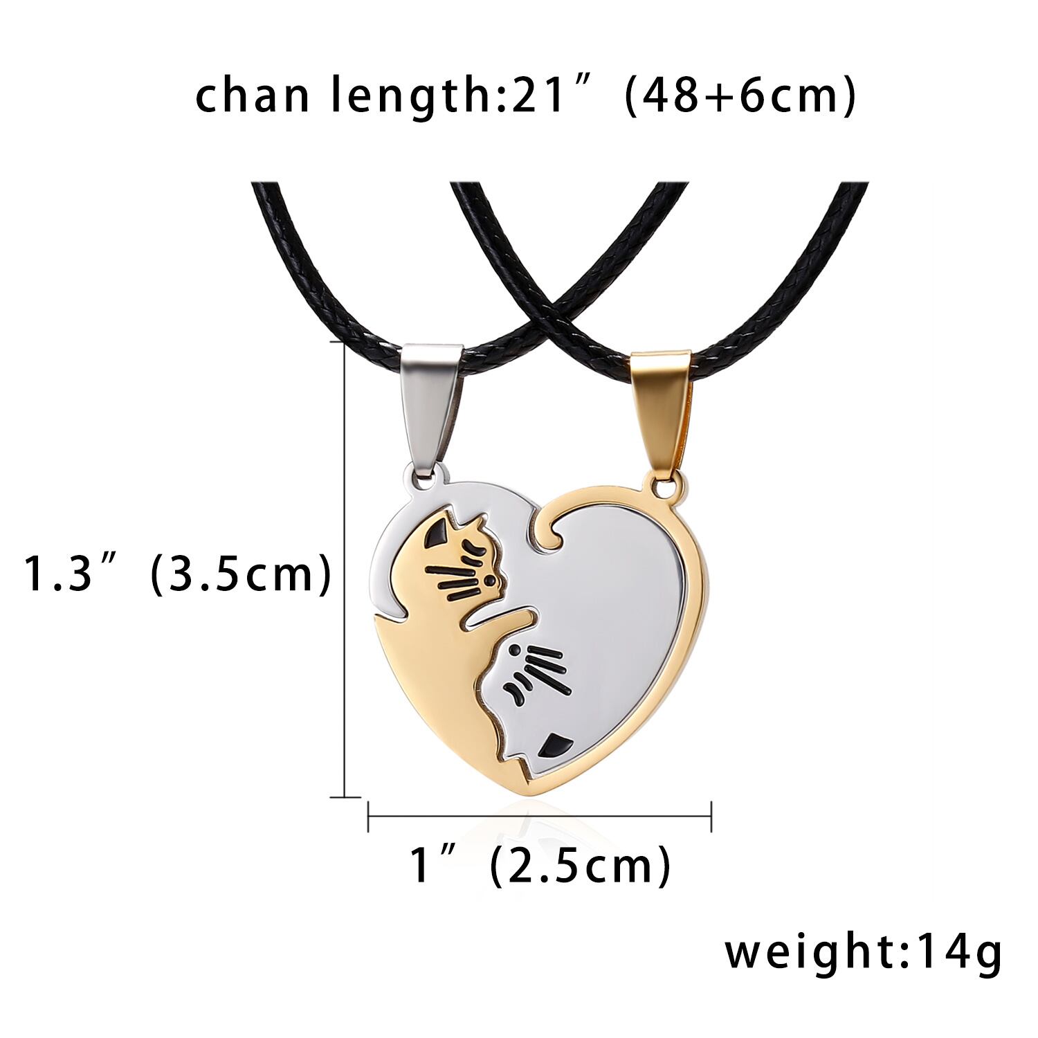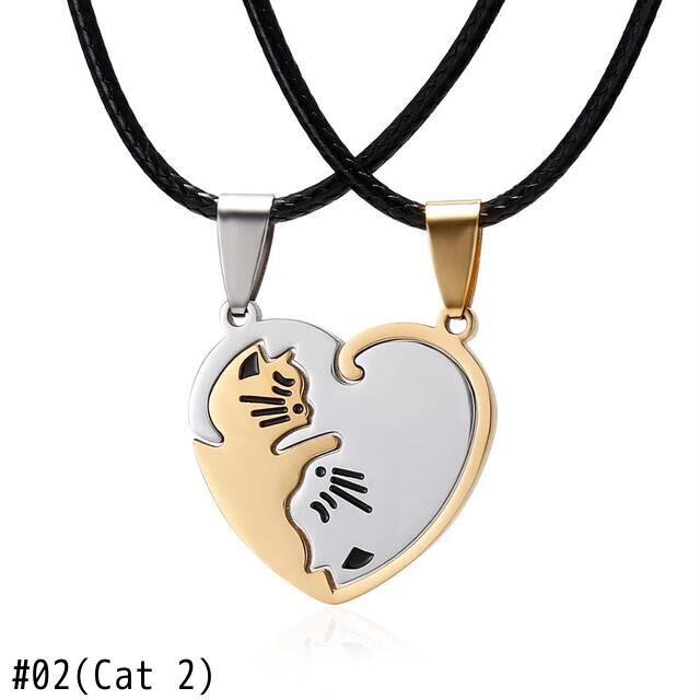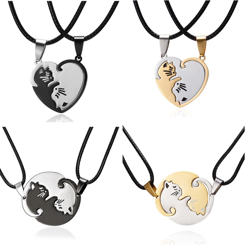 送料無料 カップルラウンド失恋猫ネックレス女性陰陽ステンレス鋼ダブルカラーペンダントスプライシング愛好家ジュエリーギフト レース アクセサリー AE7778836081393317