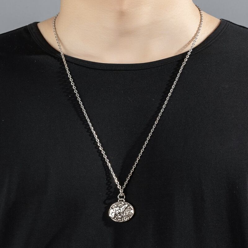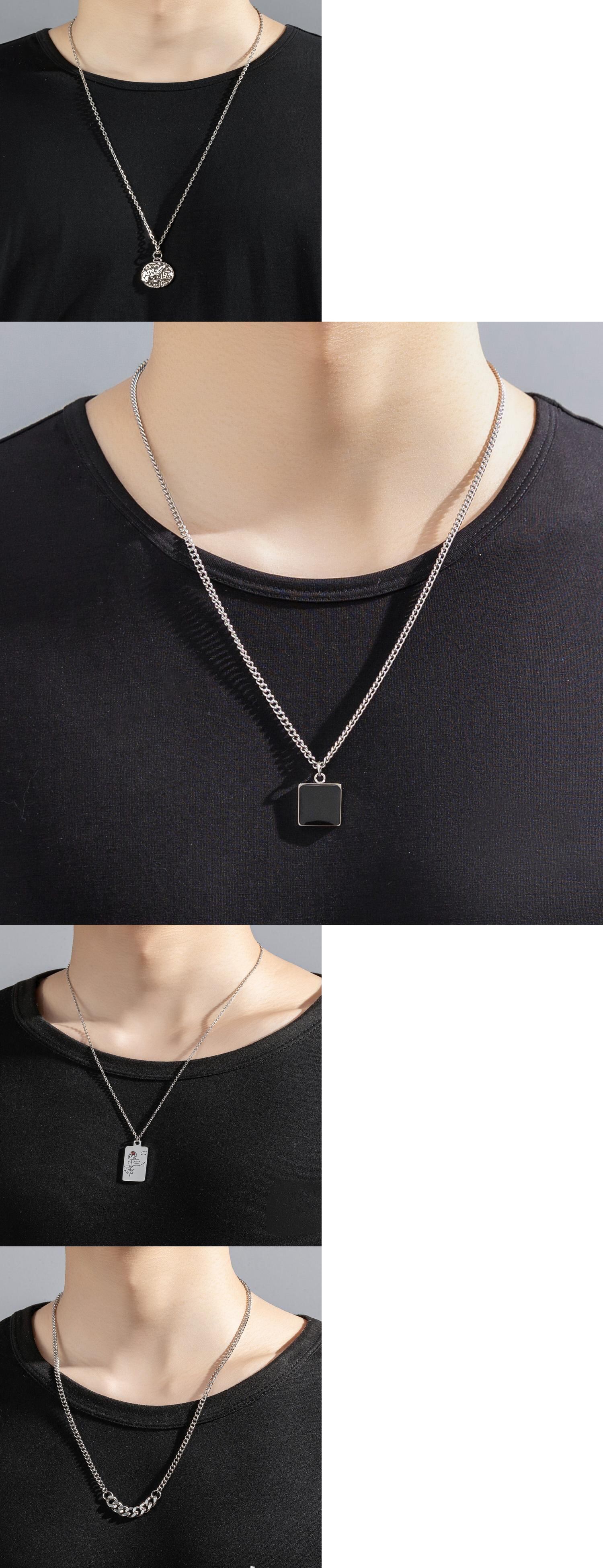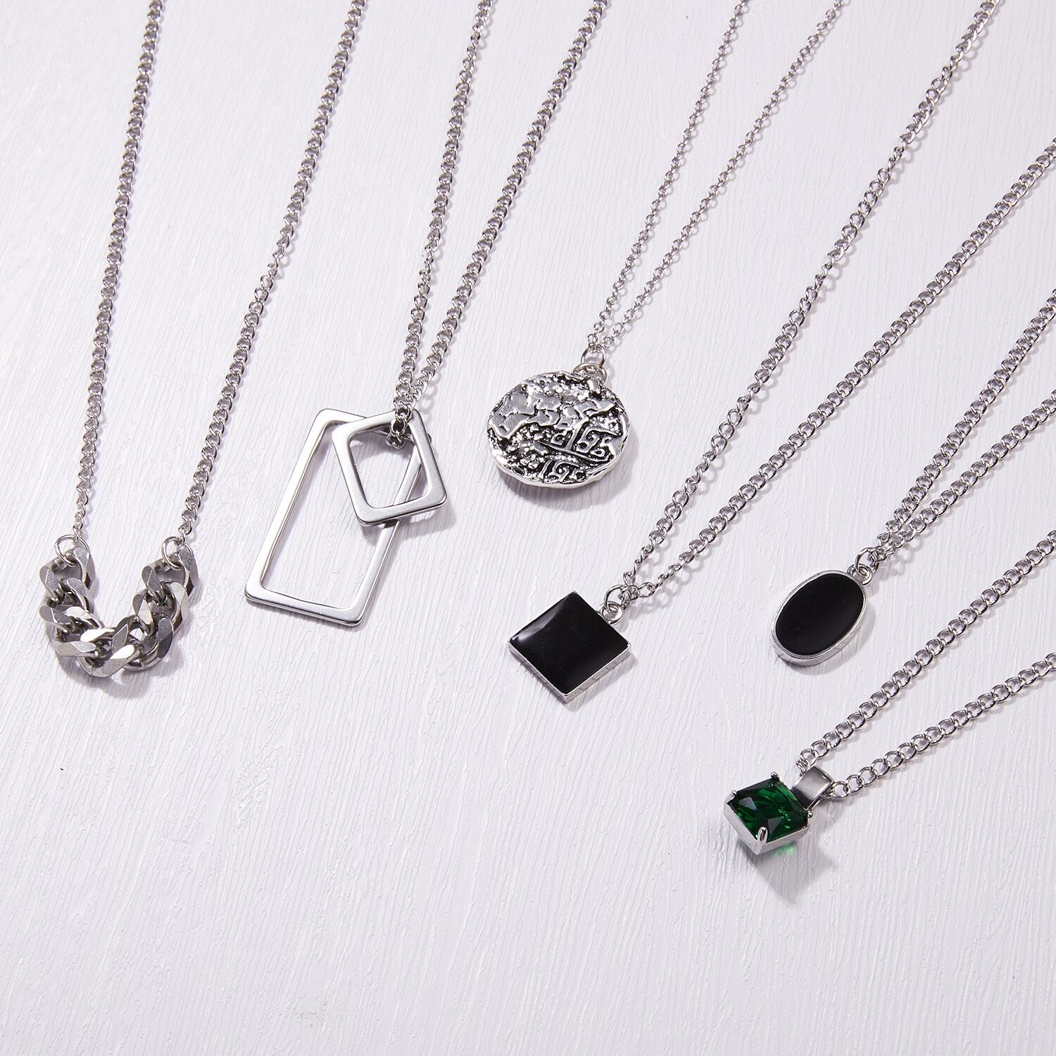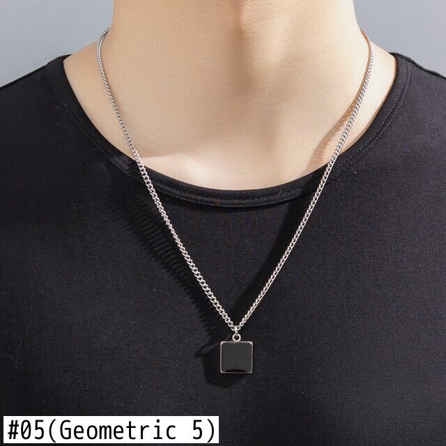 送料無料 幾何学的なペンダントネックレス男性女性シルバーカラーロングチェーンラウンドスクエアメタルパーティージュエリーカップルギフトカラー レース 銀 スクウェア アクセサリー AE7778821377034083