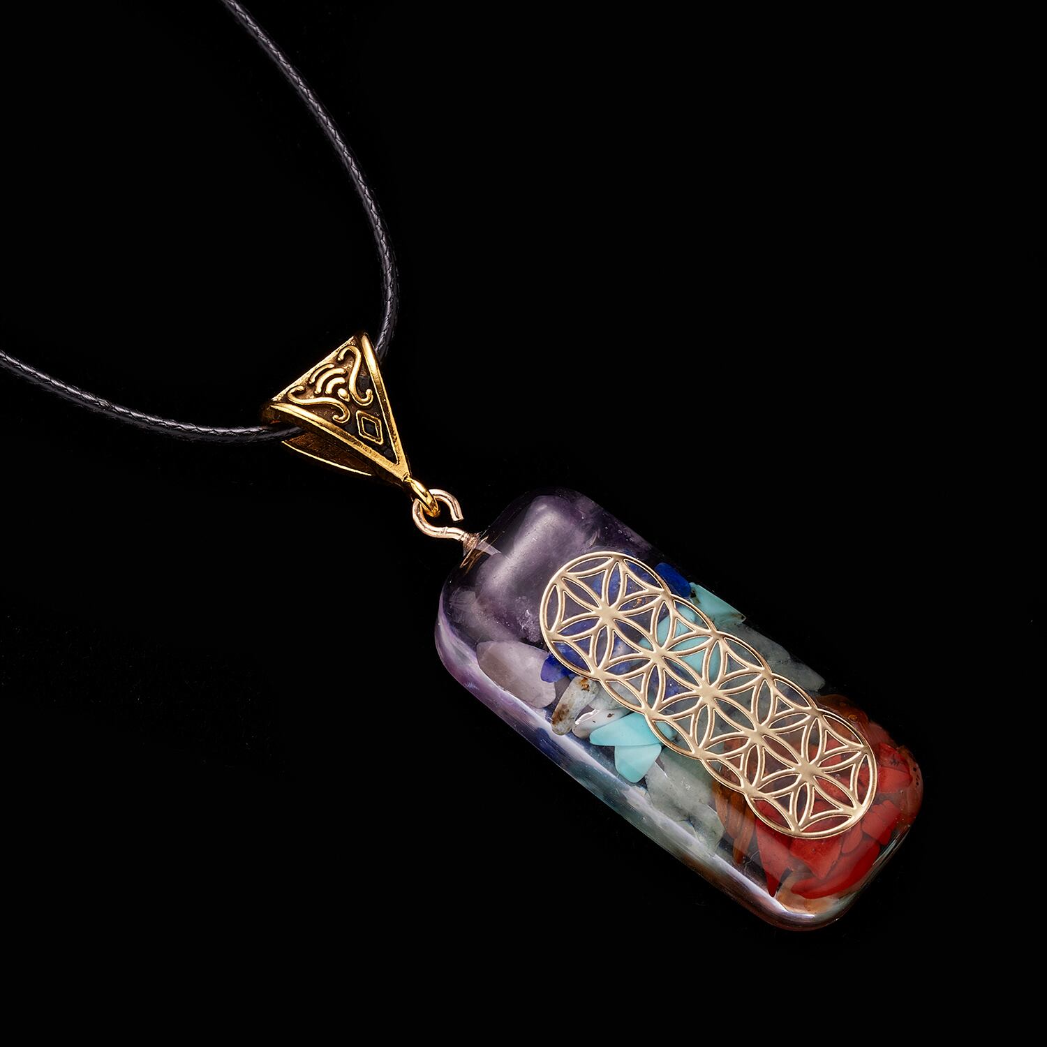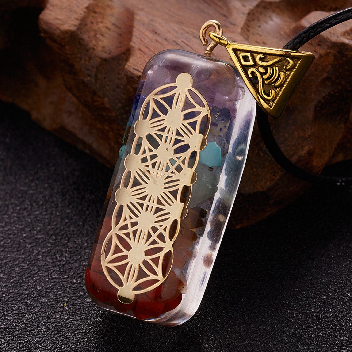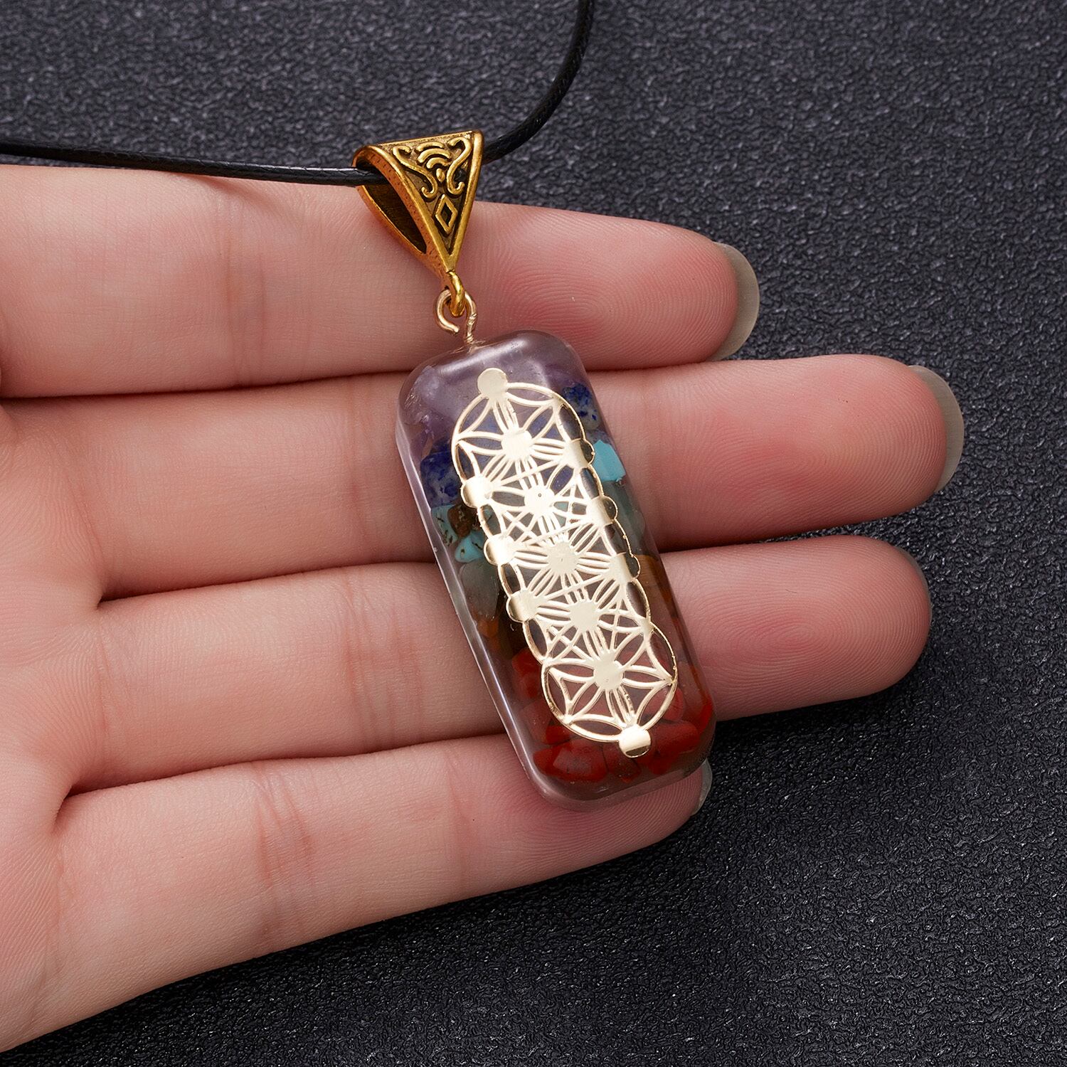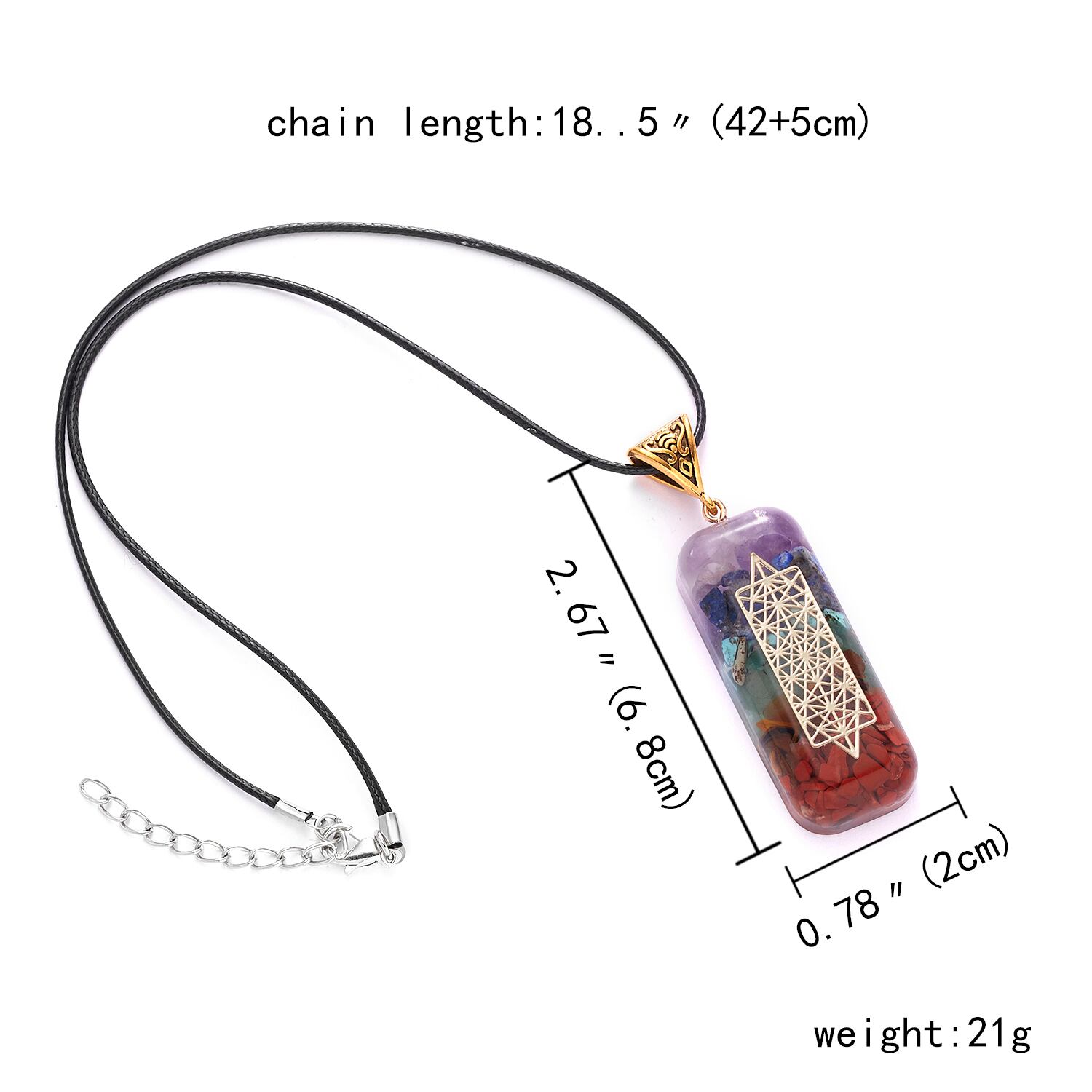 送料無料 レトロカラフル7チャクラナチュラルストーンチップジオメトリペンダントネックレス男性女性瞑想レイキヒーリングジュエリーギフト レース 天然 アクセサリー AE777886000052226