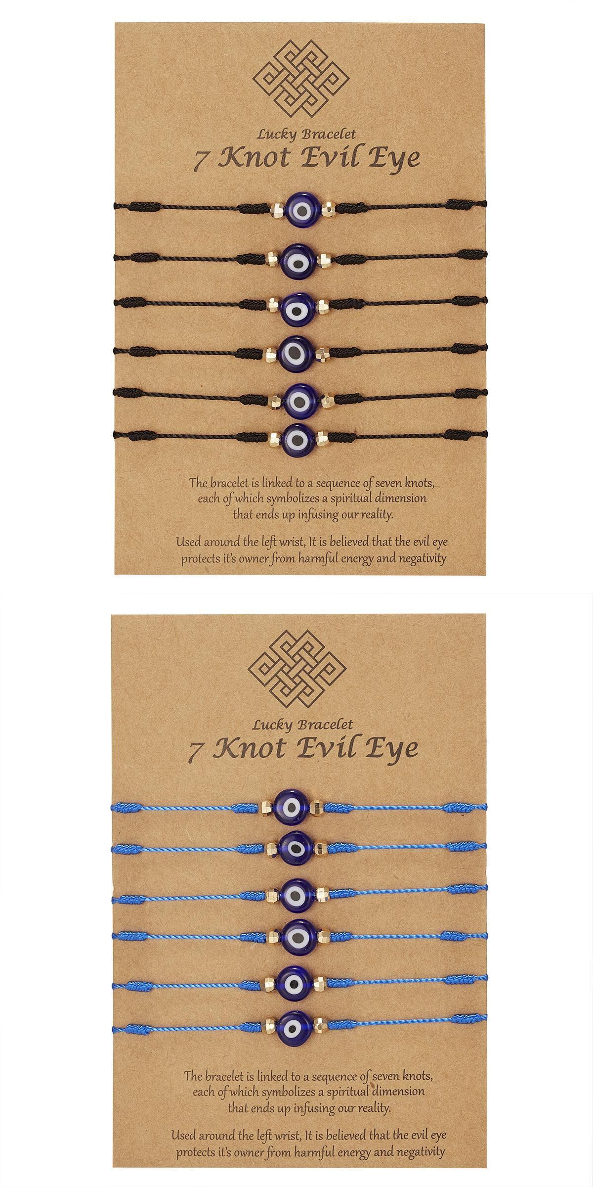 送料無料 6個/セットトルコブルーイービルアイブレスレット女性手作り織りロープチェーンクリスタルビーズブレスレットジュエリー発送 アクセサリー AE1777733698602515