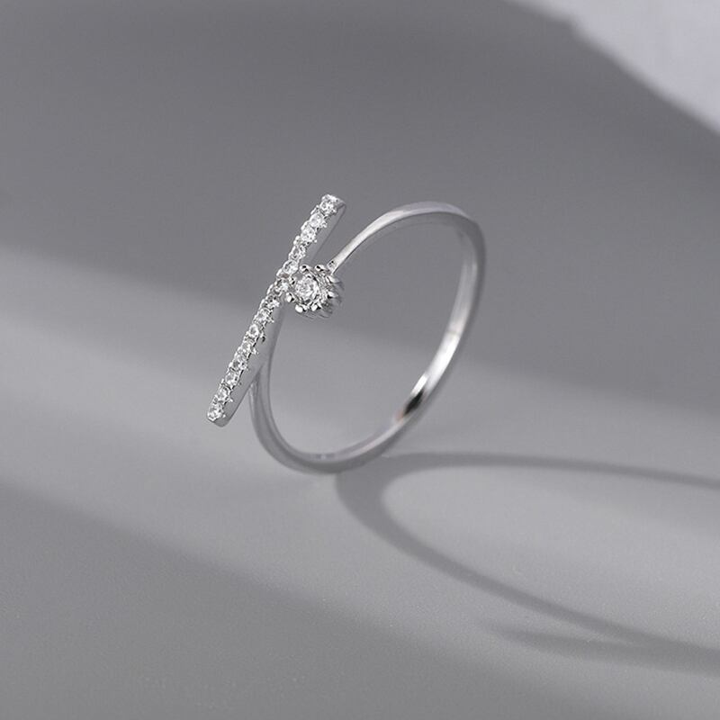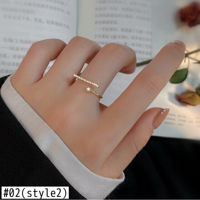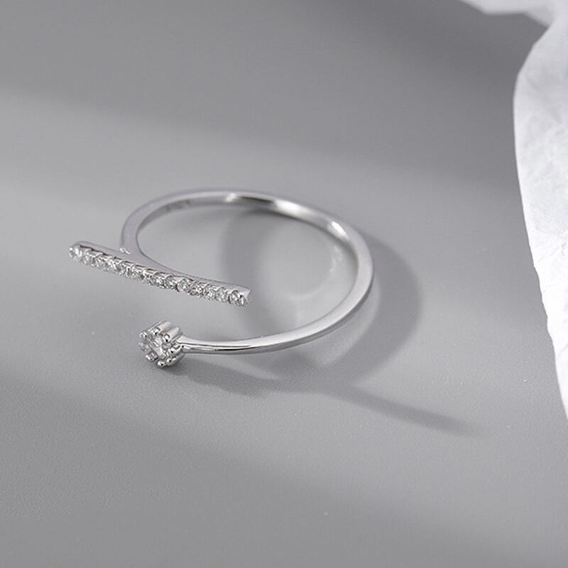送料無料 トレンディなシルバーカラー幾何学模様のクリスタルジルコンオープンリング可憐なラインストーンの指輪女性の女の子のパーティージュエリー 銀 アクセサリー AE1777713130304071