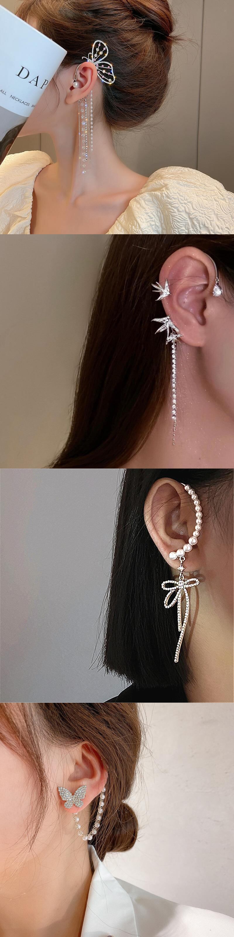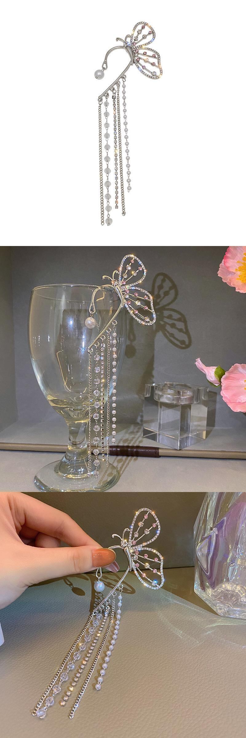 送料無料 ピアスのないロングテルバタフライイヤークリップスパークリングジルコンイヤーカフクリップイヤリングウェディングパーティージュエリー 指輪 アクセサリー AE1777732435818795