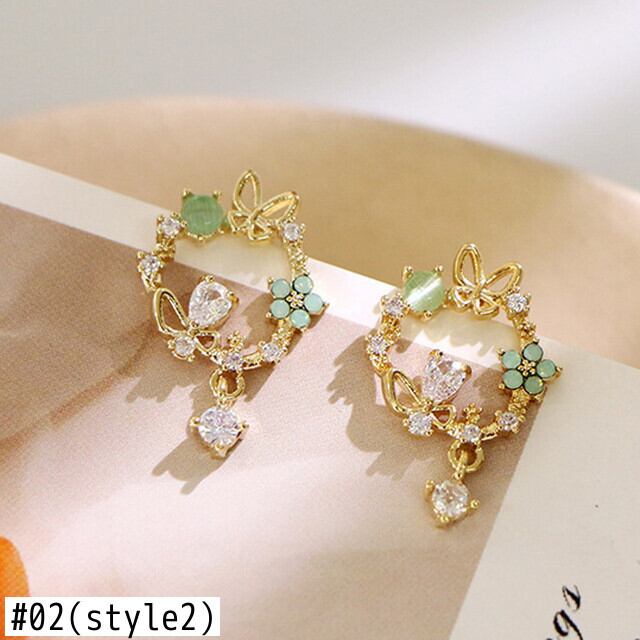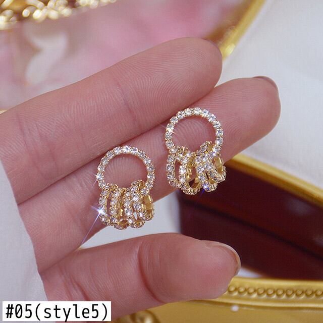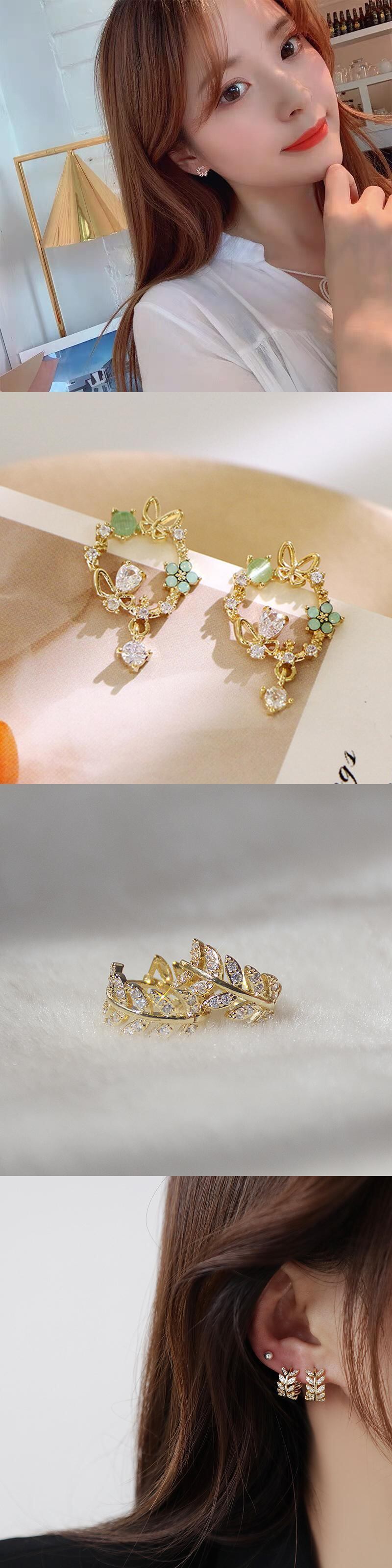 送料無料 絶妙な金の葉サークルスタッドピアス女性の光沢のあるラインストーンジルコンピアス豪華な結婚披露宴のジュエリーギフト イヤリング リング 指輪 アクセサリー AE177775841512767