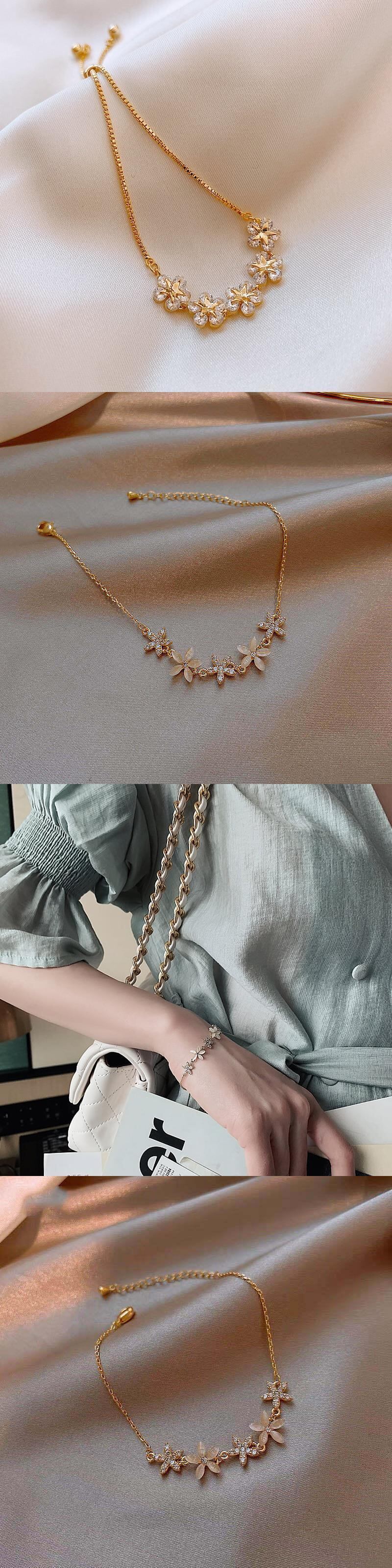 送料無料 ホットデリケートな花銅舗装設定キュービックジルコンチャームブレスレット調節可能なチェーン女性愛好家最高のジュエリーギフト アジャスタブル フラワーデザイン アクセサリー AE1777758691456669