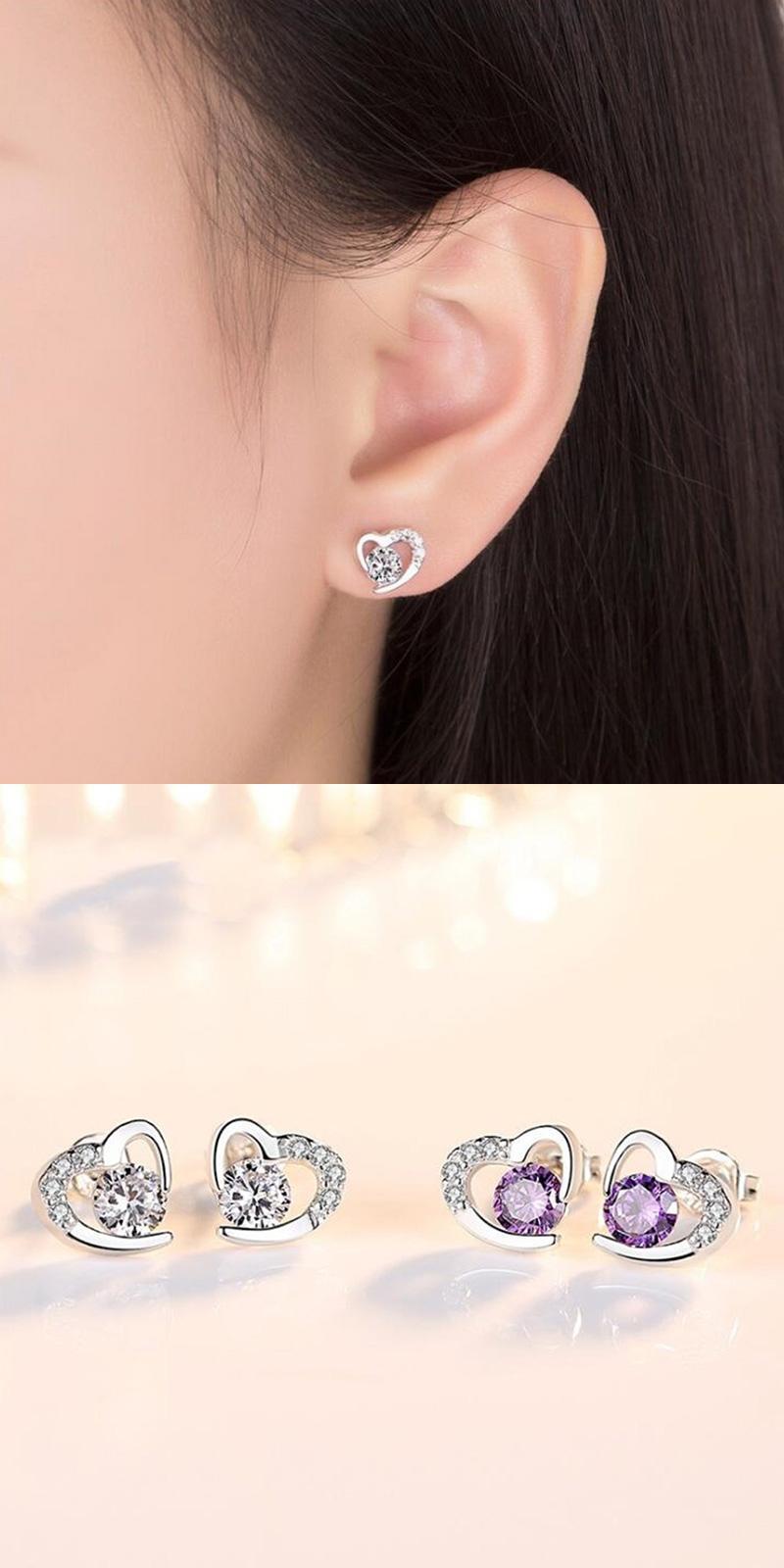送料無料 ラグジュアリークリスタルハートスタッドピアスシルバーカラーウェディングエンゲージメントジュエリーシャイニージルコンピアス女性 イヤリング リング 指輪 銀 アクセサリー AE1777733373830030