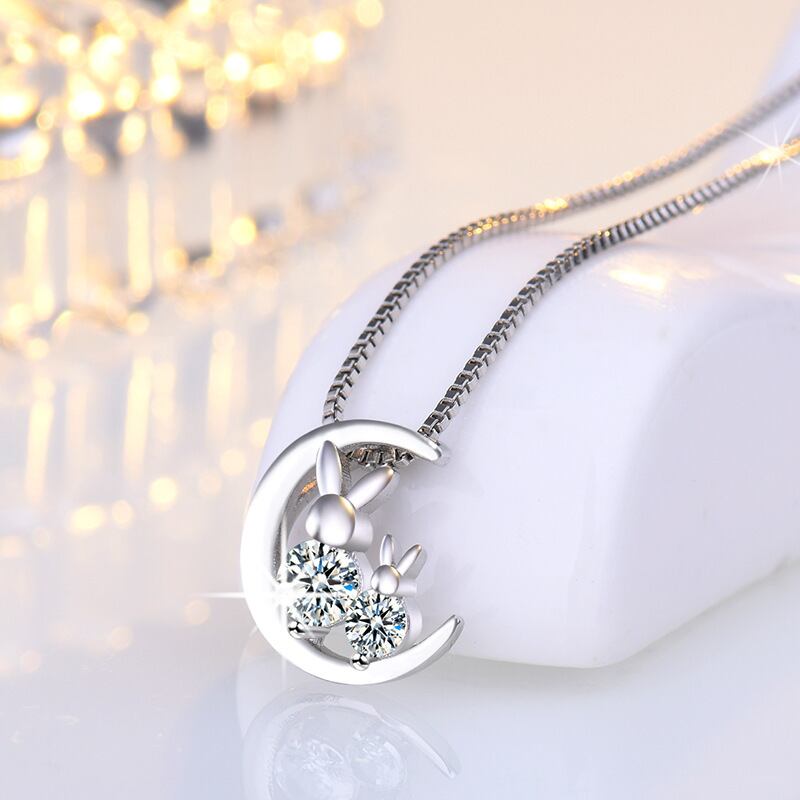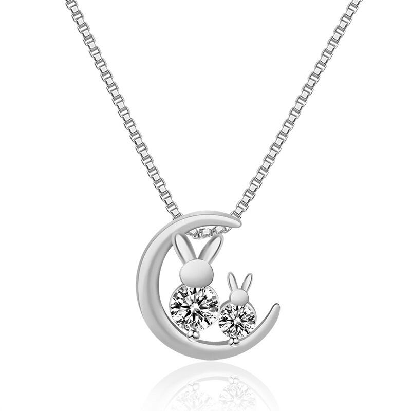 送料無料 ラグジュアリーシャイニークリスタルムーンラビットペンダントクラビクルチェーンネックレス女性AAAキュービックジルコニアチョーカーチャームパーティージュエリーギフト レース 風信子石 アクセサリー AE1777730828856807