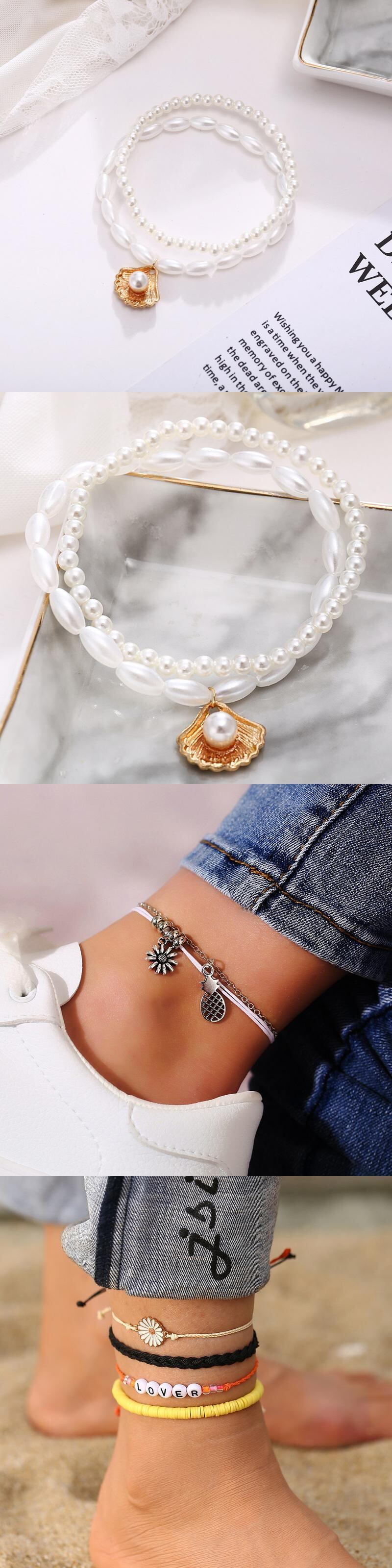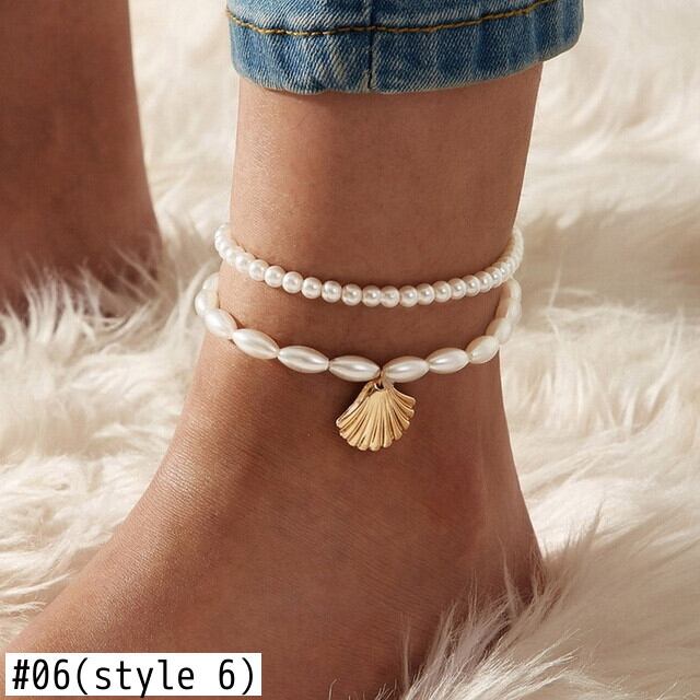 送料無料 ボヘミアゴールドチェーンアンクレットブレスレットオンレッグフットジュエリー自由奔放に生きるスタームーンシェルパールビーズチャームアンクレットセット女性用アクセサリー 真珠 アクセサリー AE1777768179082835