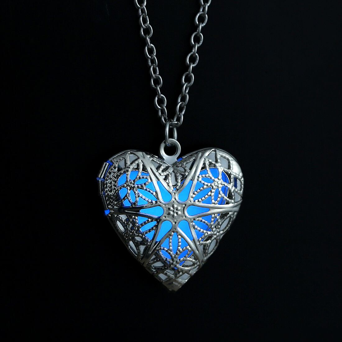 送料無料 2021グローインザダークホロウハートグローイングペンダントネックレスルミナスジェムストーンチェーンネックレスジュエリーレディースギフトシップ レース アクセサリー AE1777752692181601