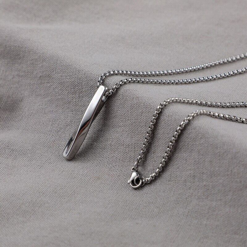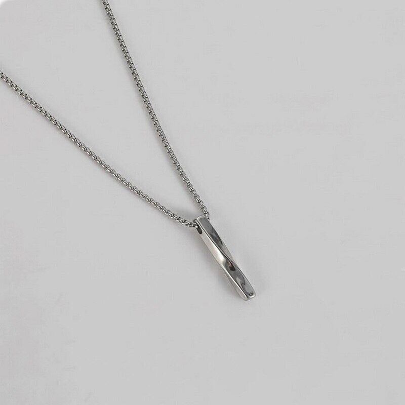 送料無料 2021シルバーカラースパイラルロングバー長方形ペンダントネックレス女性男性シンプルステンレススチールネックレスジュエリーギフト レース 銀 アクセサリー AE1777781597559217