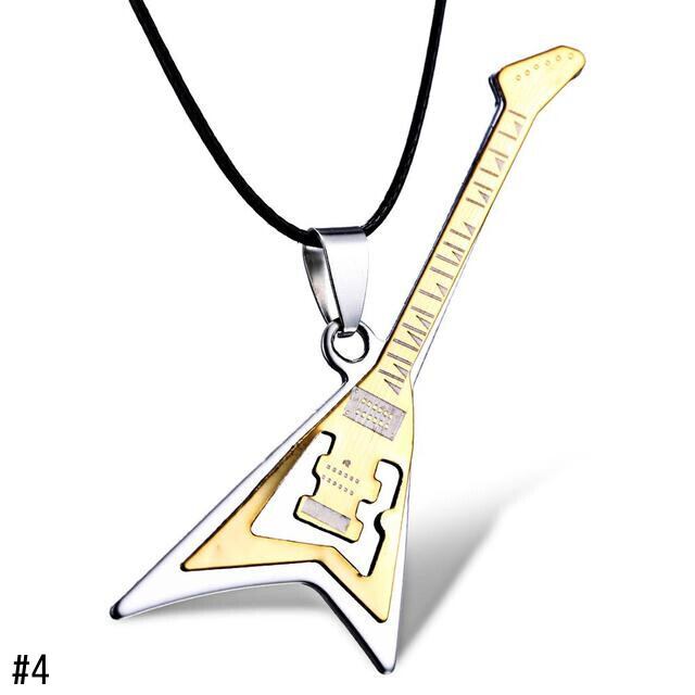 送料無料 ステンレス鋼のネックレス男性女性フェザーフレームギタークロスペンダントネックレスジュエリー発送 レース アクセサリー AE1777750459159588