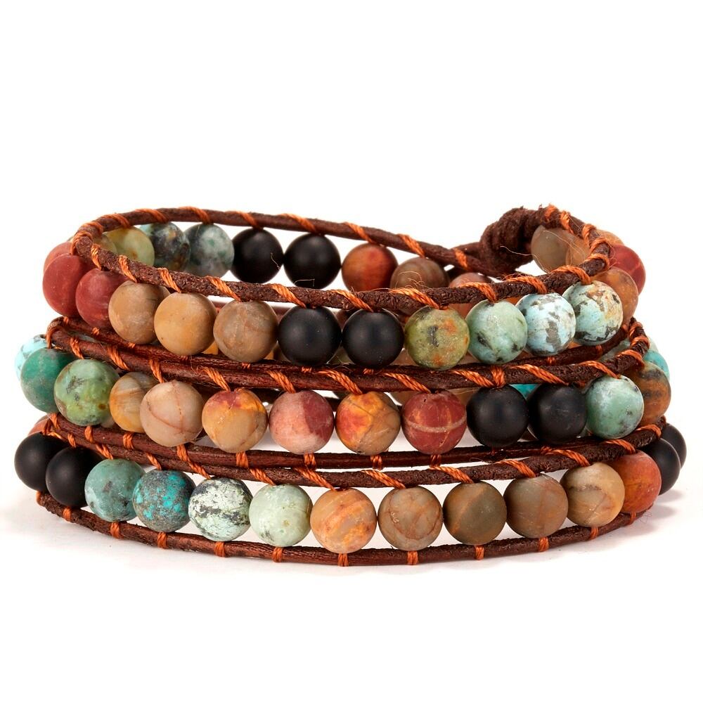 送料無料 ホットヴィンテージ7チャクラブレスレット男性女性天然石ヨガビーズブレスレット自由奔放に生きる手作りラップロープブレスレットジュエリー ナチュラル ビンテージ アクセサリー AE1777784530951546