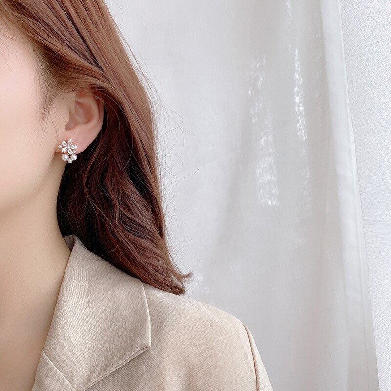送料無料 小さな新鮮な甘い花のクリスタルのイヤリング絶妙な銅インレイジルコンフラワーリーフガーランド女性のイヤリングジュエリー 大人ガーリー スウィート キュート カジュアル 指輪 フラワーデザイン アクセサリー AE1777748849163189