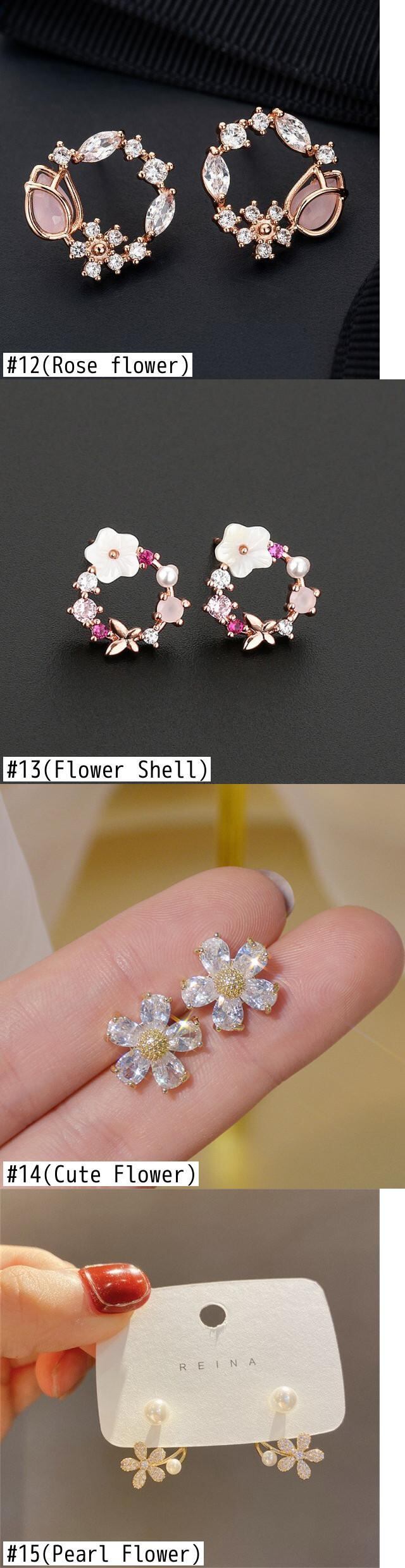 送料無料 甘いかわいいフラワークリスタル気質幾何学的な光沢のあるジルコンイヤリングステートメントイヤリング女性の女の子のペンディエンテス 大人ガーリー スウィート キュート カジュアル 指輪 フラワーデザイン アクセサリー AE1777782546152051