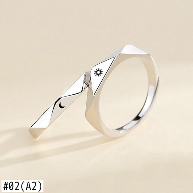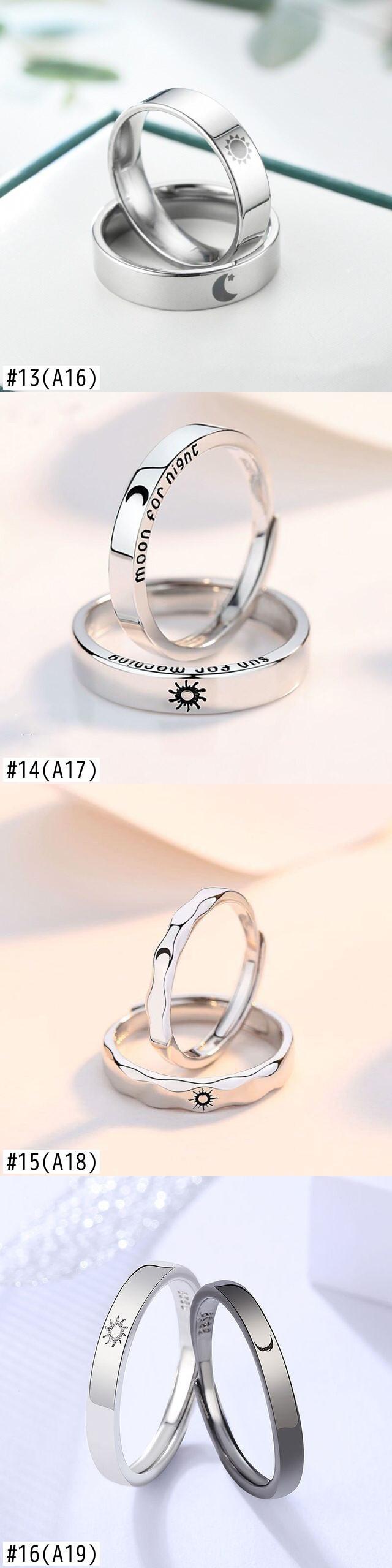 送料無料 2個サンムーンラバーカップルリングシルバーカラーシンプルオープニングリング女性男性プロミスウェディングエンゲージメントジュエリーベストギフト 指輪 銀 アクセサリー AE1777774395635850