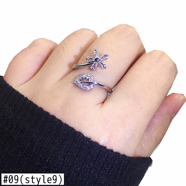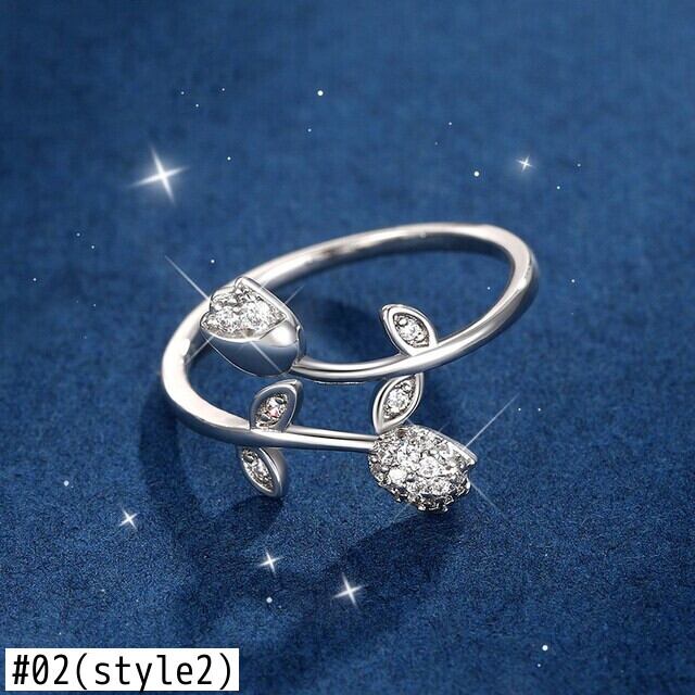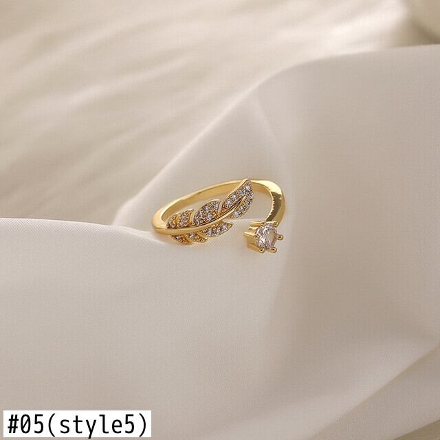 送料無料 クリスタルジルコンリーフフェザーリングレディースゴールドシルバーカラーアジャスタブルオープンリングウェディングパーティージュエリーアニロ 指輪 銀 アクセサリー AE1777718761160015