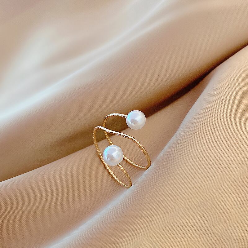 送料無料 イミテーションパールフィンガーリングヴィンテージゴールドアジャスタブル不規則オープンリング女性ウェディングジュエリーパーティーギフト 指輪 真珠 ビンテージ アクセサリー AE177772415317463