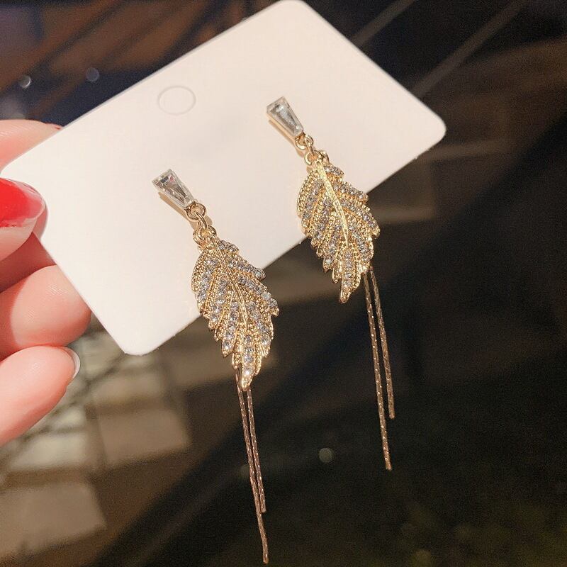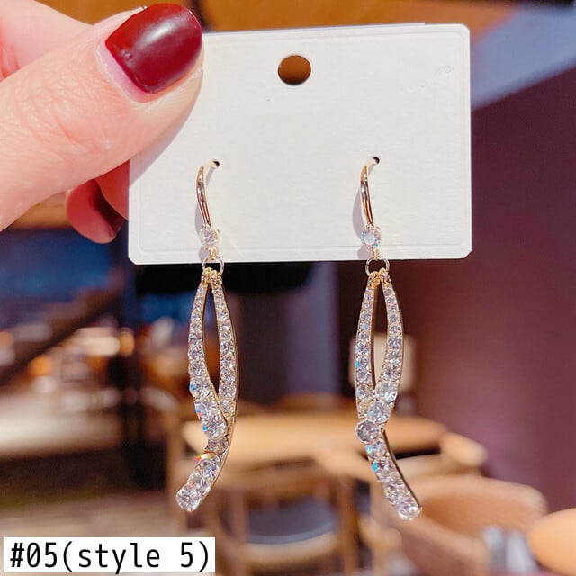 送料無料 ラグジュアリークリスタルロングテルイヤリング女性フレンチシャイニーラインストーンリーフウェディングダングルピアスジュエリー 指輪 アクセサリー AE1777740071209149