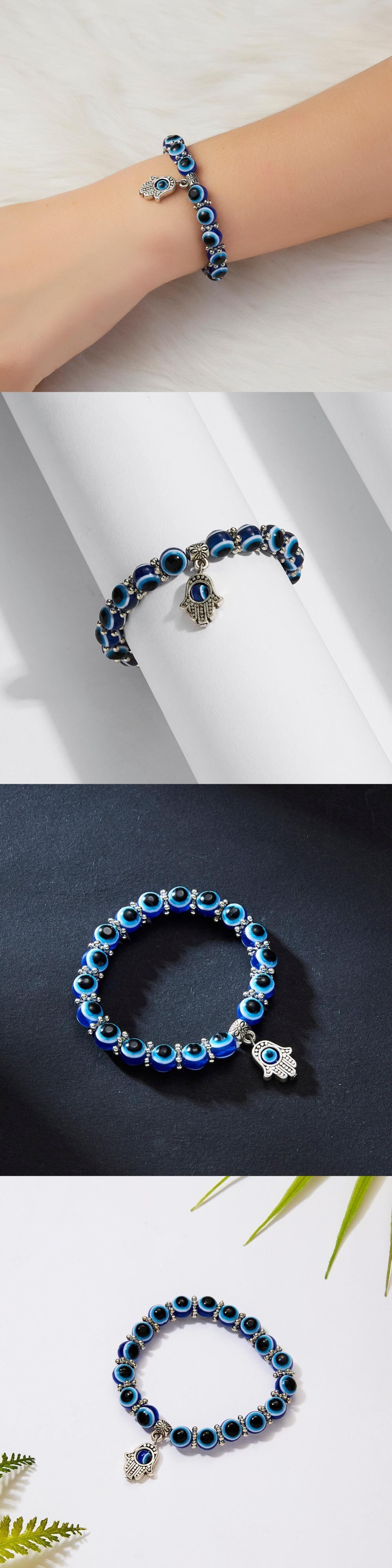 送料無料 トルコのラッキーイービルアイブレスレットブルーイービルアイビーズブレスレット男性女性手作りラッキージュエリーチャームブレスレット発送 アクセサリー AE1777784297319115