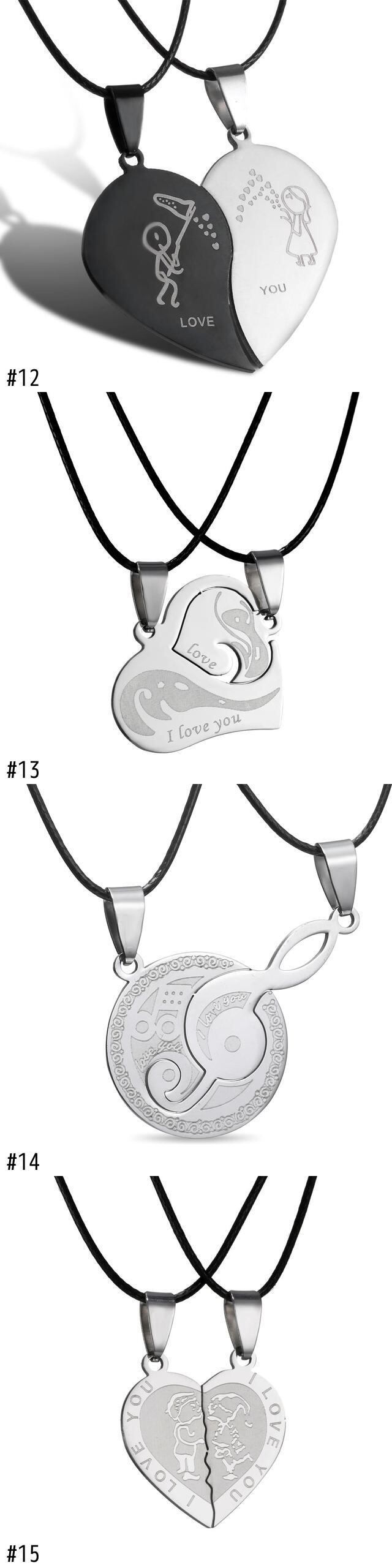 送料無料 2個/セットステッチの親友これまでのカップルネックレスステンレス鋼失恋猫ペンダントネックレスユニセックスジュエリー レース アクセサリー AE1777715259217642