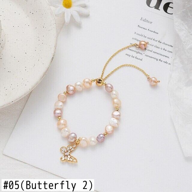 送料無料 トレンディな天然淡水パールブレスレット女性バロックパールバタフライフラワージルコンブレスレットジュエリーギフト ナチュラル 真珠 フラワーデザイン アクセサリー AE177772100878483