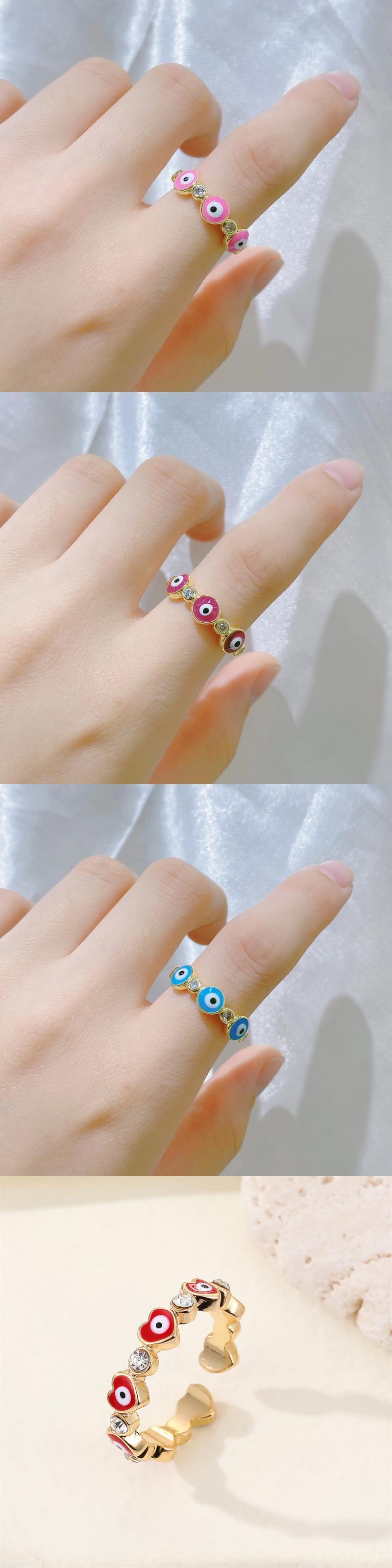 送料無料 ターキッシュイービルアイオープンリング絶妙なクリスタルラッキーブルーアイズフィンガーリングレディースガールズミニマリストパーティージュエリー 指輪 アクセサリー AE1777753263379556