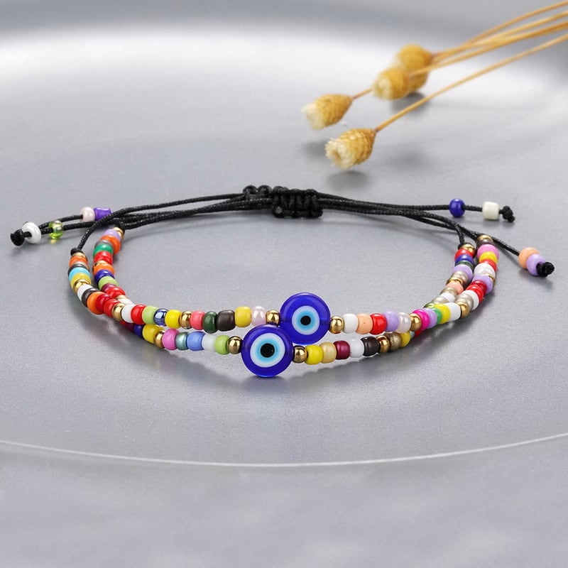 送料無料 シンプルなトルコのラッキーイービルアイブレスレット手作り編みこみロープカラフルな樹脂ビーズブレスレット女性ブルーアイチャームジュエリーギフト アクセサリー AE1777775454081655