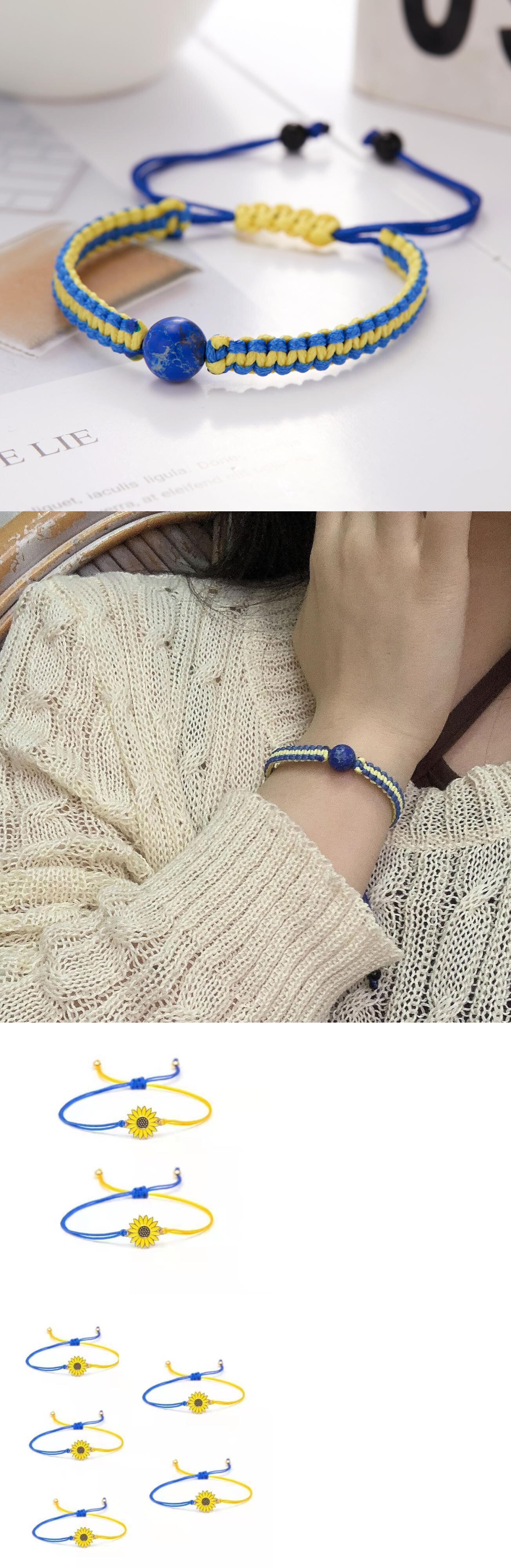 送料無料 デイジーフラワーブレスレットウクライナ旗手織りロープチャームブレスレット女性男性カップルジュエリー旅行パーティーギフト フラワーデザイン アクセサリー AE1777726567336492